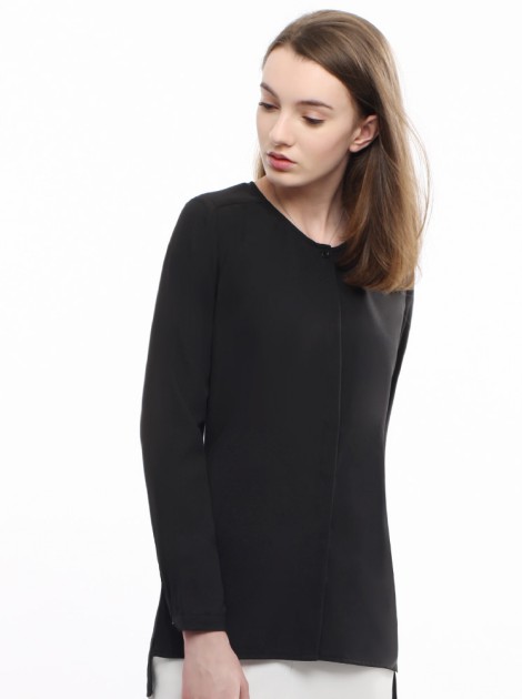 雪紡簡約開叉上衣-黑:選擇尺寸