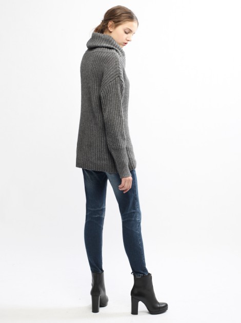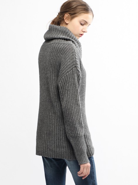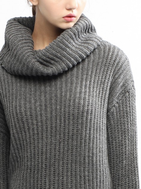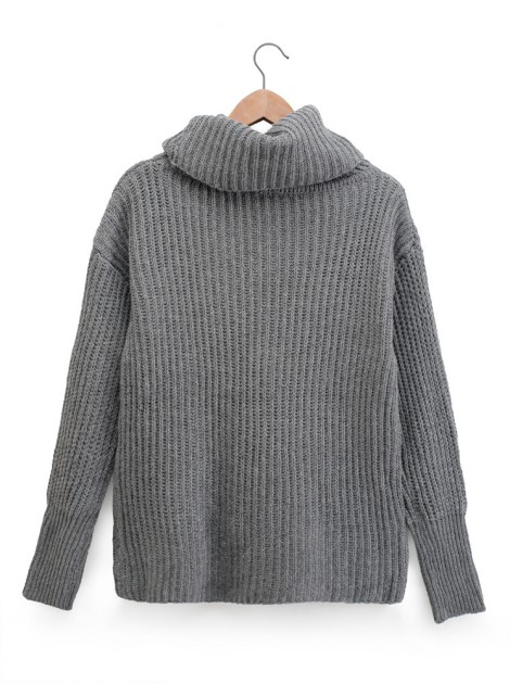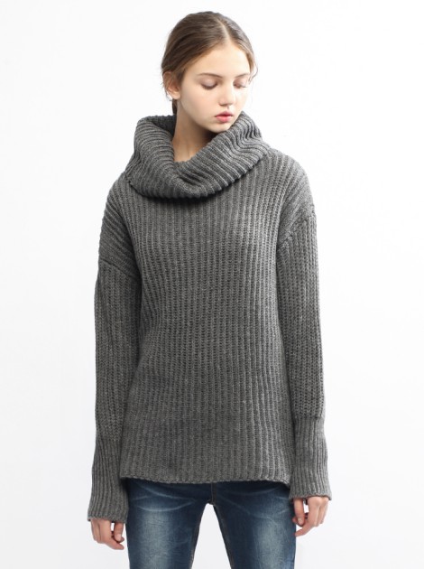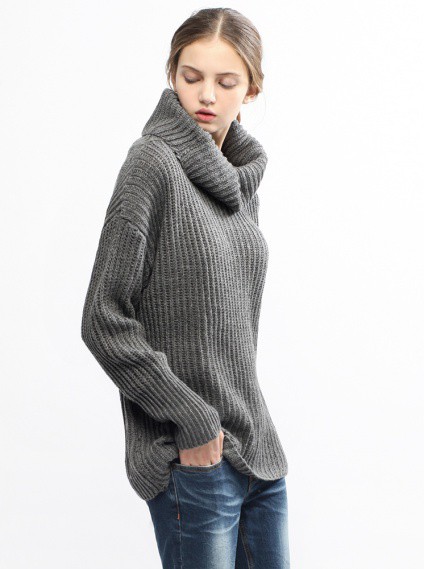 寬鬆高領長版毛衣-深灰:選擇尺寸