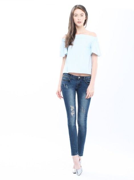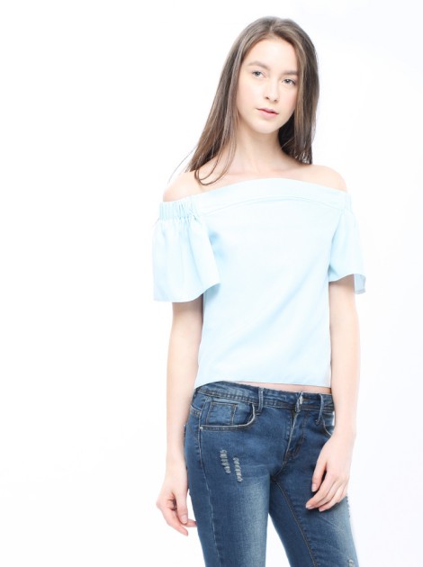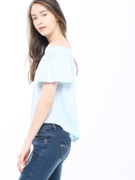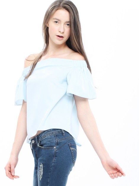 性感一字領雪紡上衣-淺藍:選擇尺寸