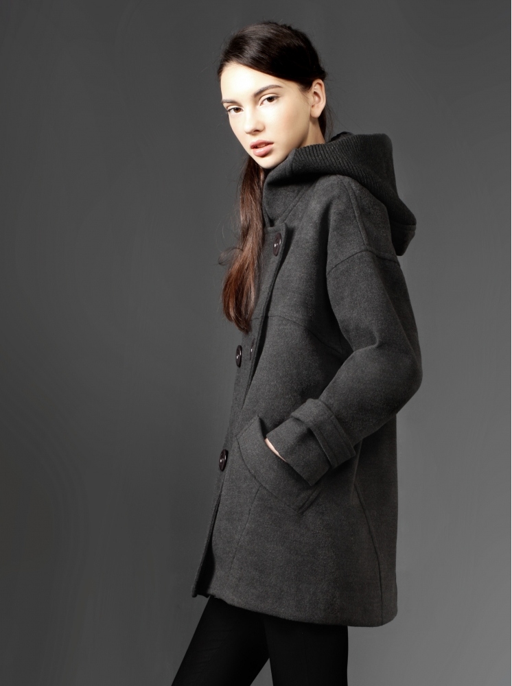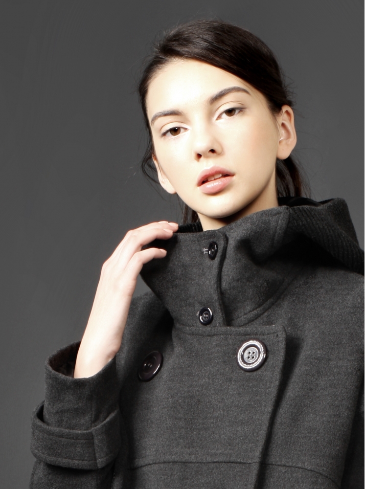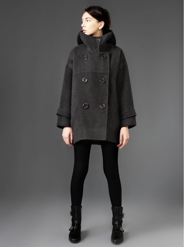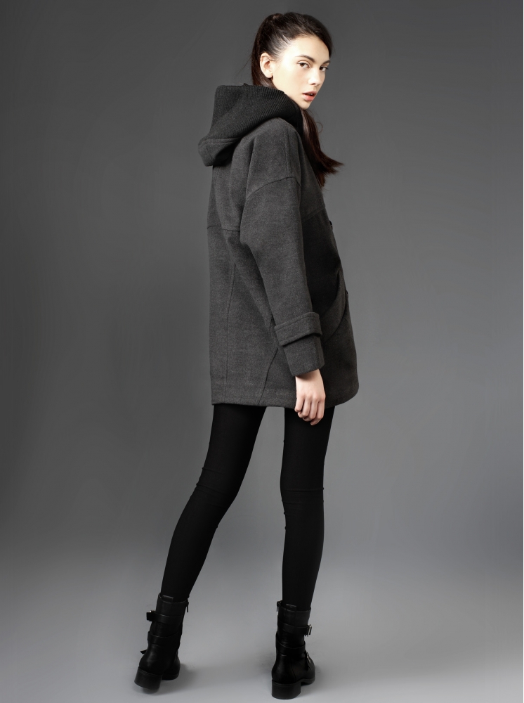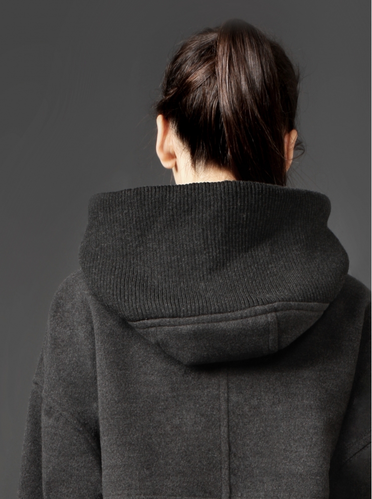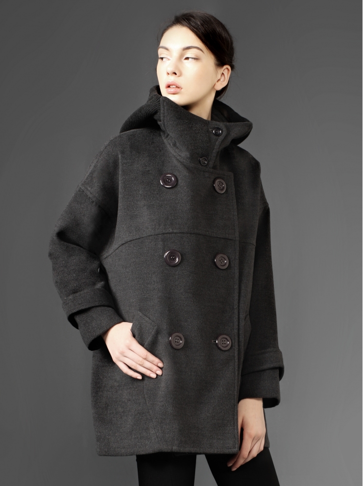 排扣繭型毛呢大衣-黑灰