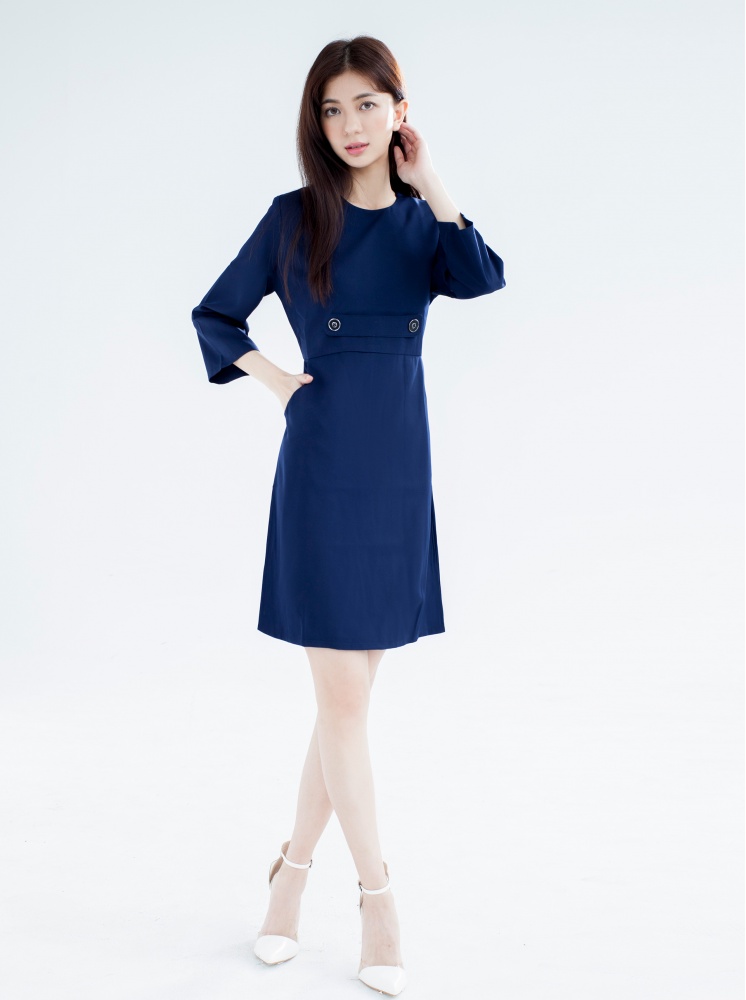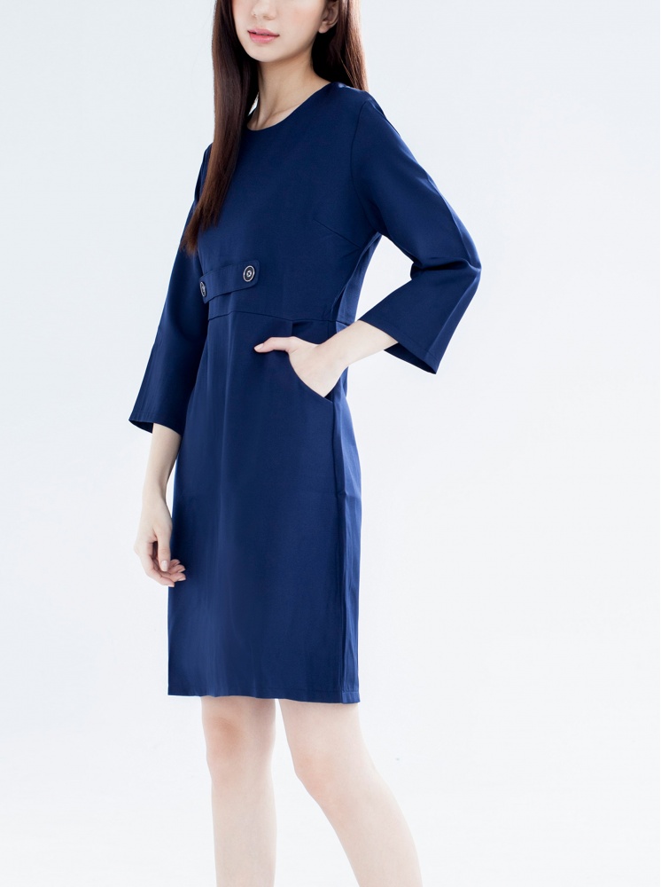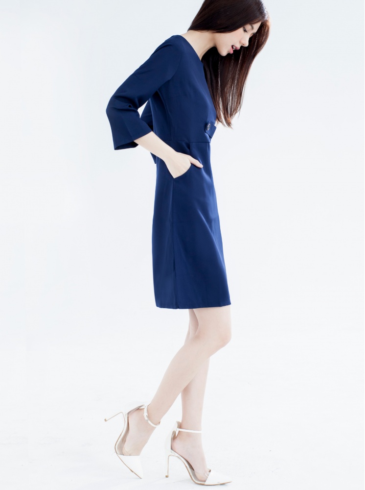 • 修身口袋洋裝-深藍