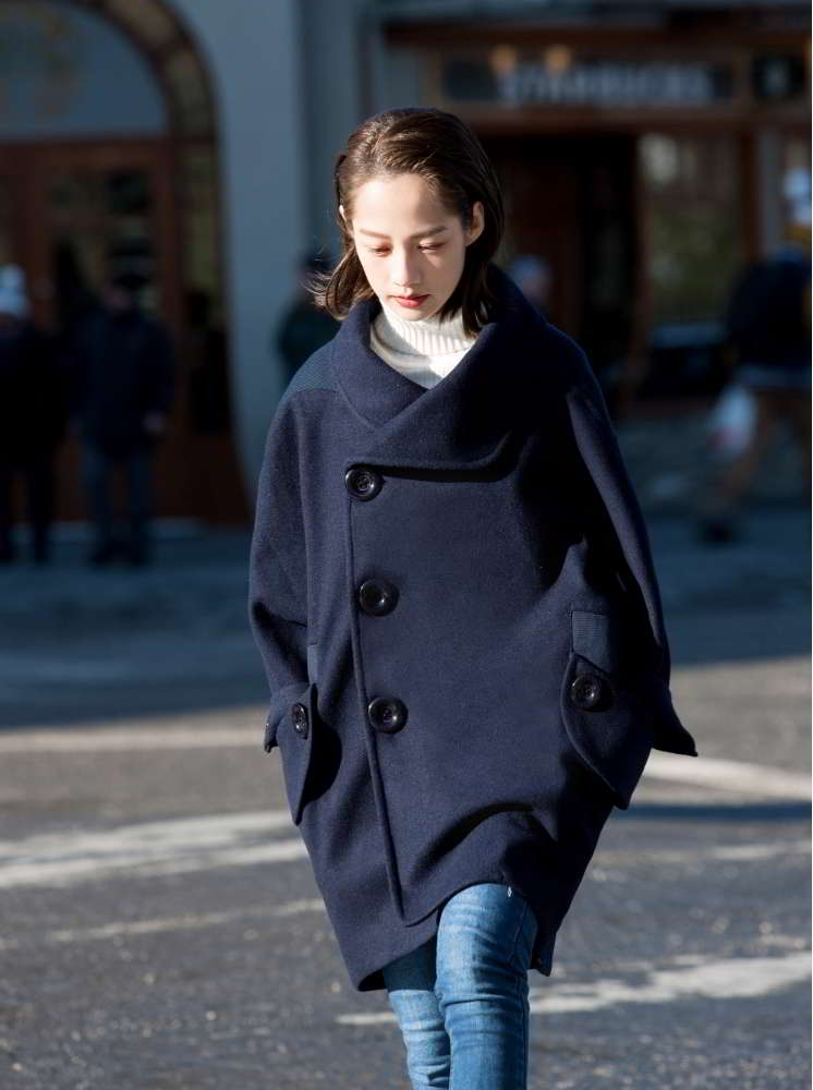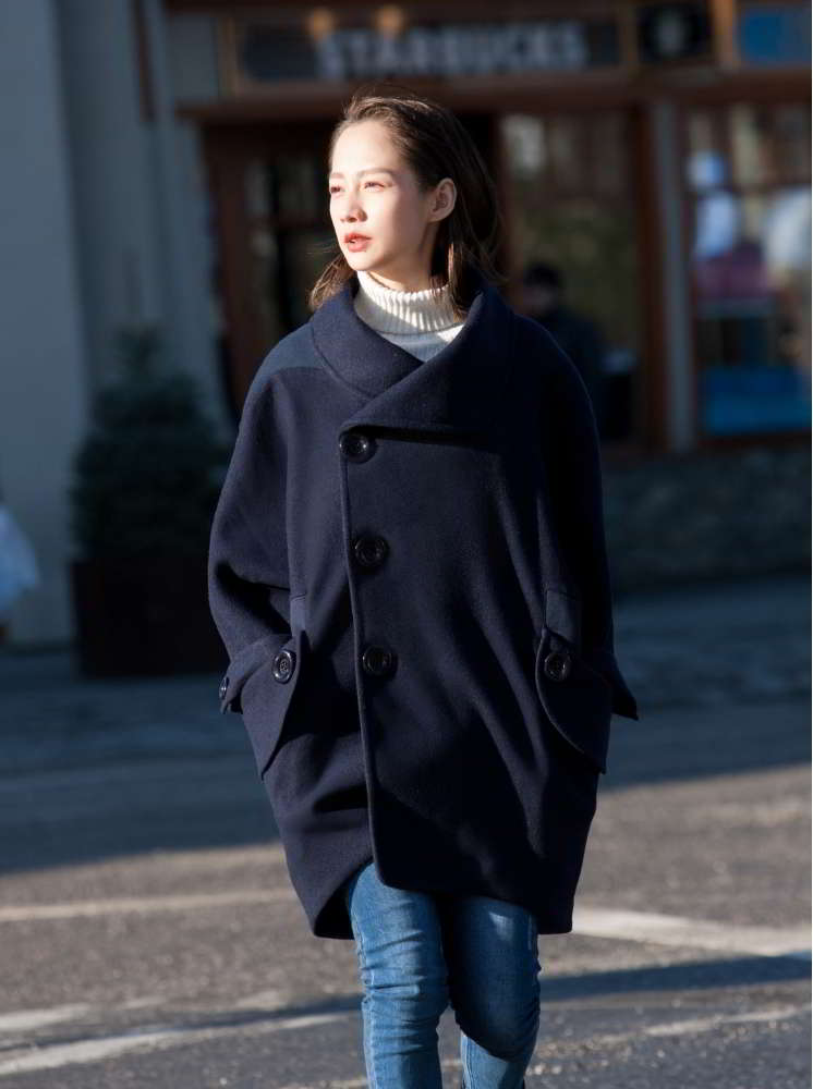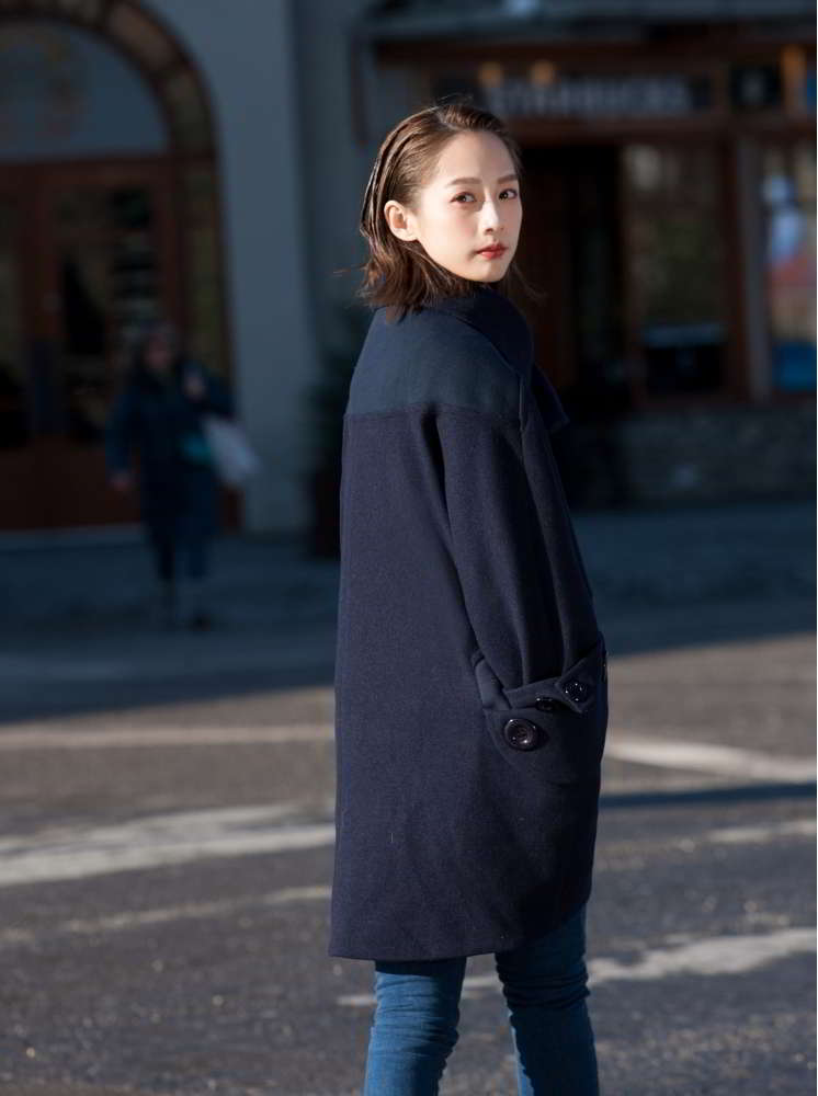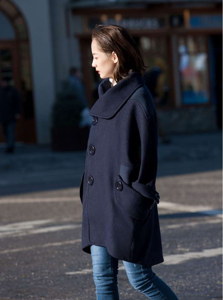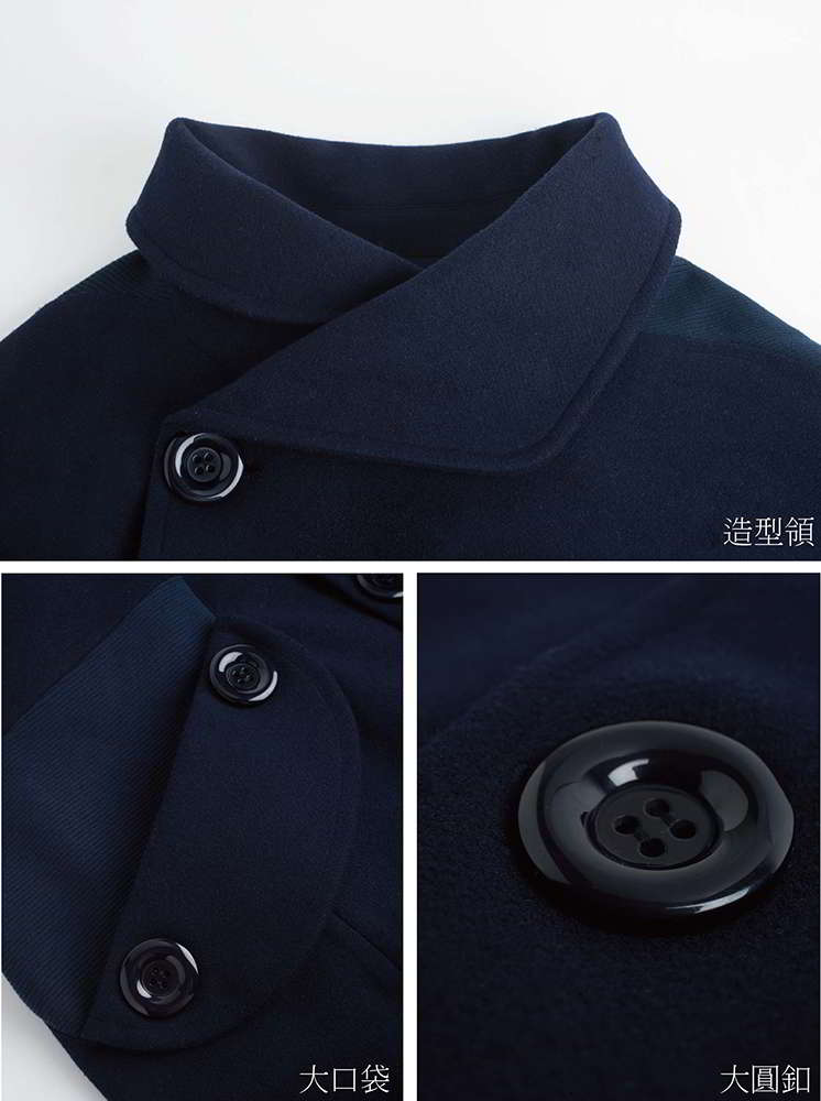 寬領繭型大口袋毛呢外套-藍:選擇尺寸