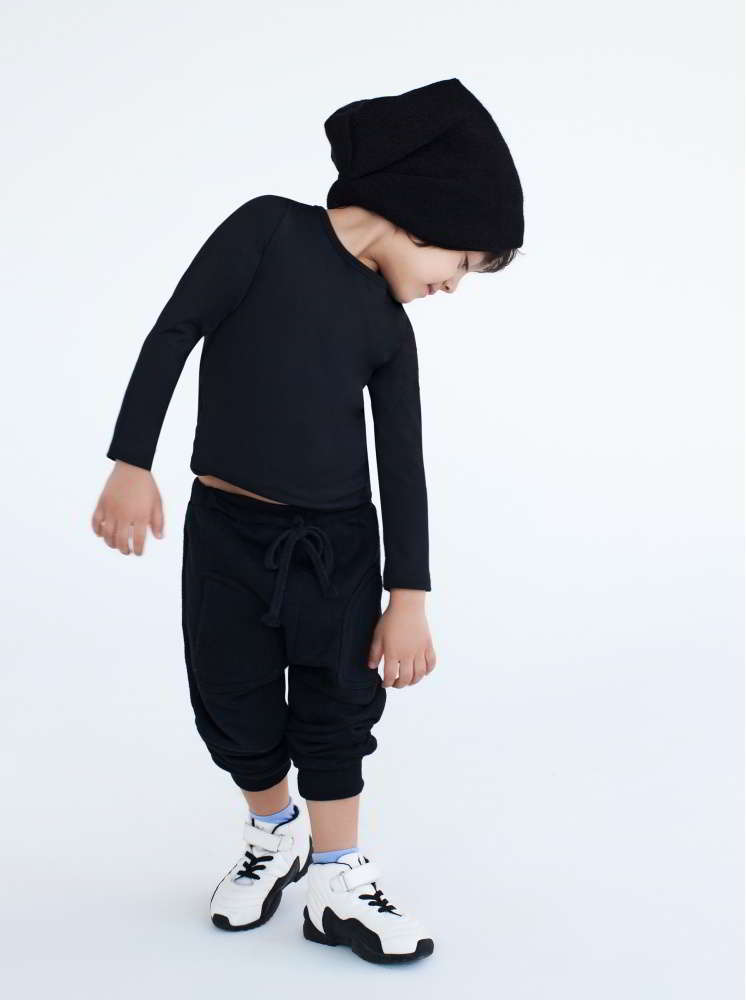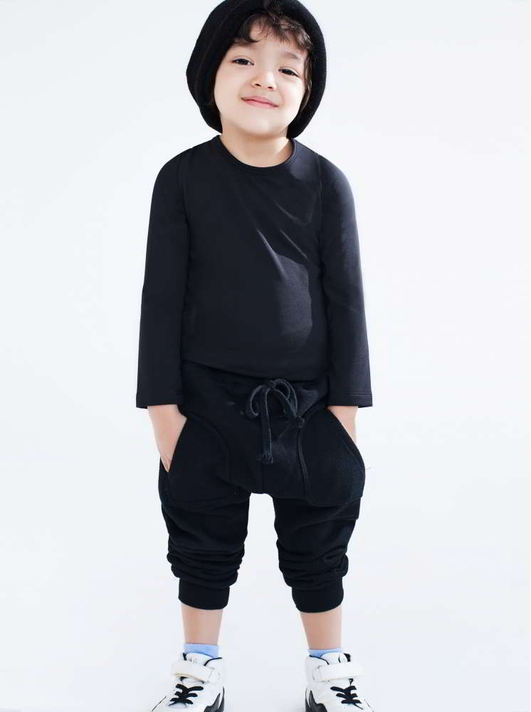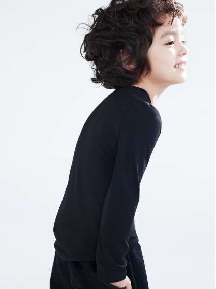 童裝圓領刷毛發熱衣-黑:選擇尺寸