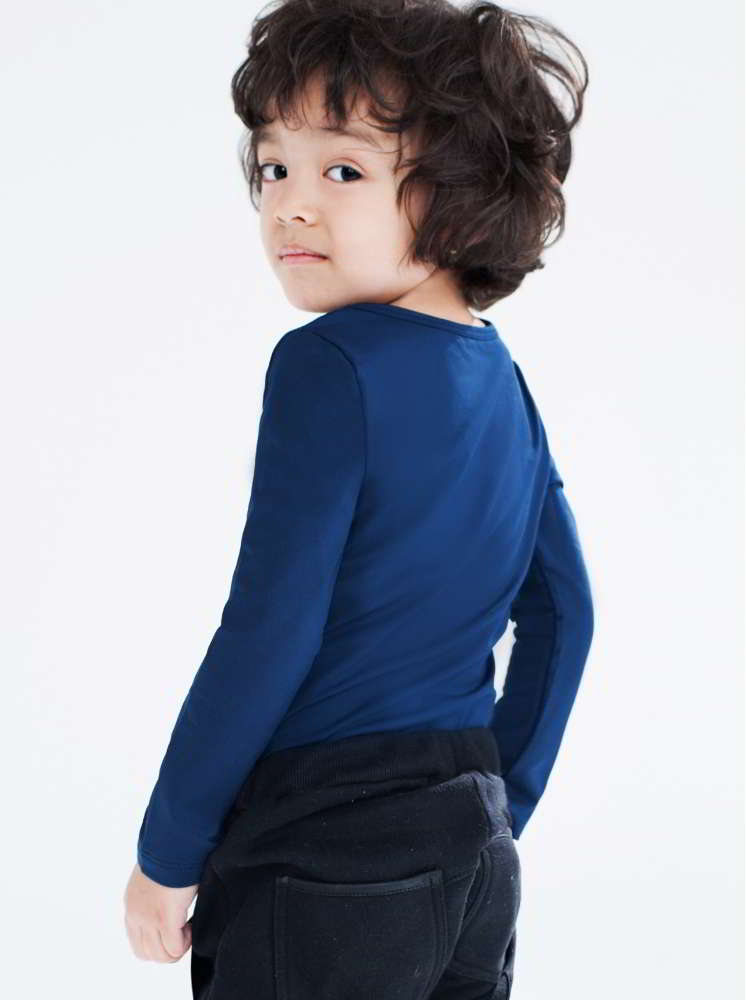 童裝圓領刷毛發熱衣-深藍