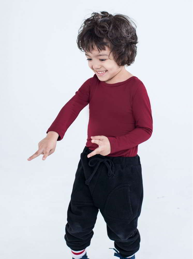 童裝圓領刷毛發熱衣-暗紅:選擇尺寸
