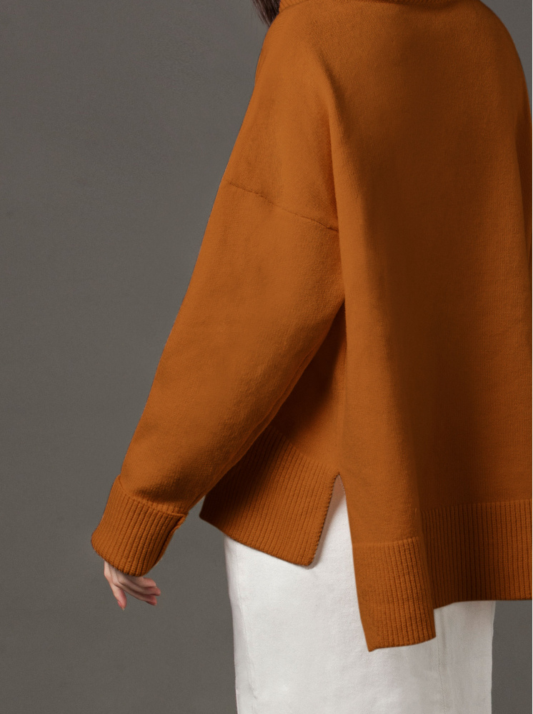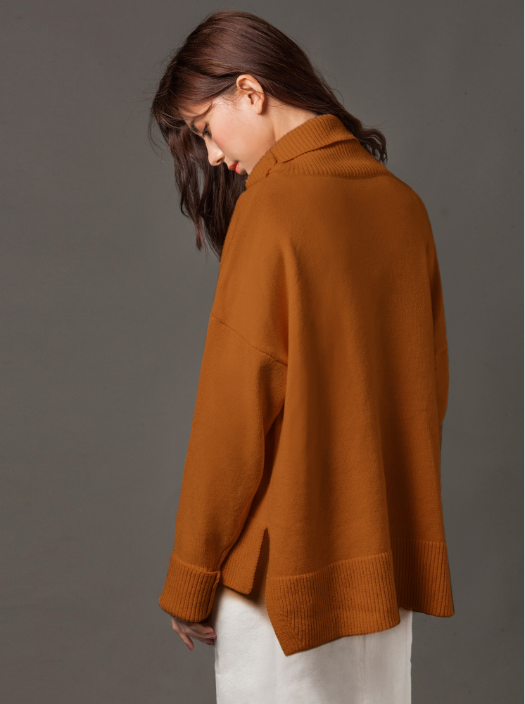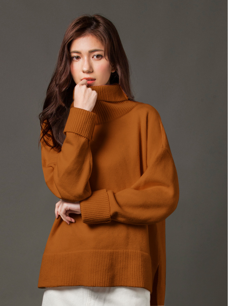 前短後長高領針織上衣-土黃 :選擇尺寸