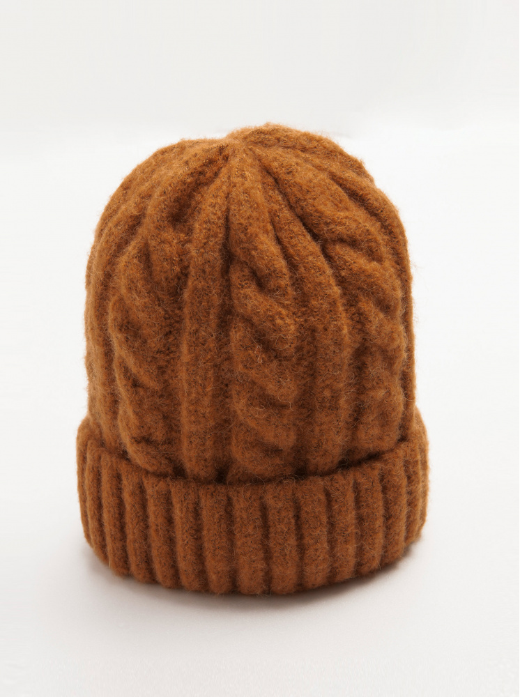 素面麻花針織帽-深橘