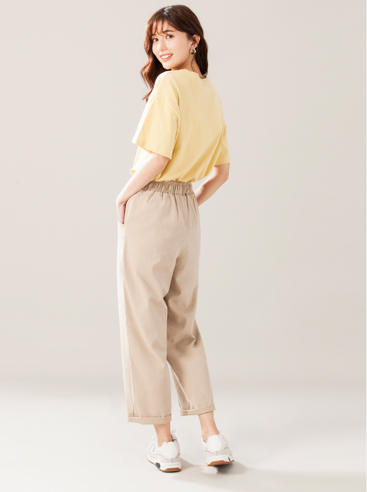 • 【正韓】純棉鬆緊男友褲-卡其