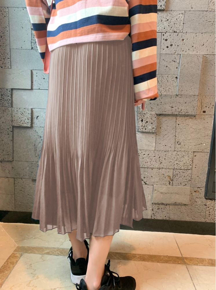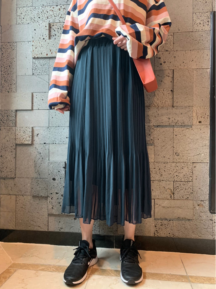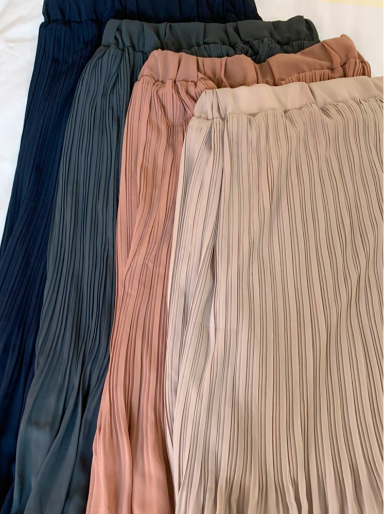【正韓】飄逸雪紡鬆緊百褶裙-深藍:選擇尺寸