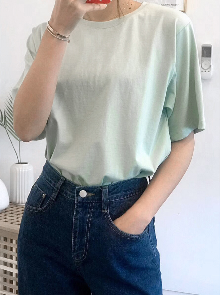 【正韓】百搭純棉素T-黑:選擇尺寸