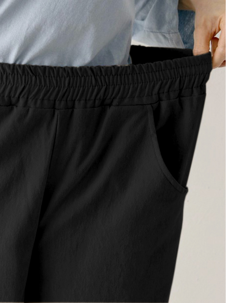 • 舒適純棉腰鬆緊直筒褲-黑