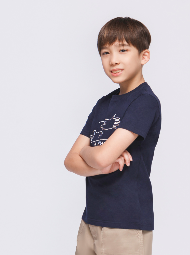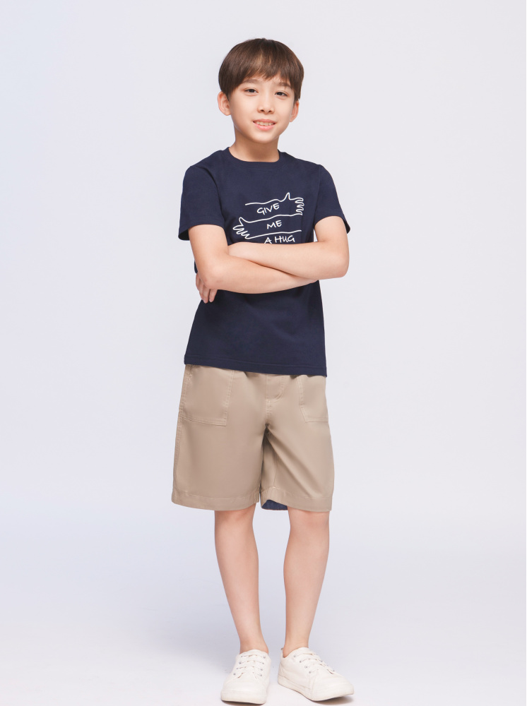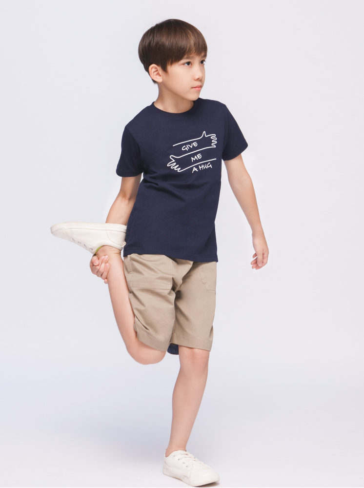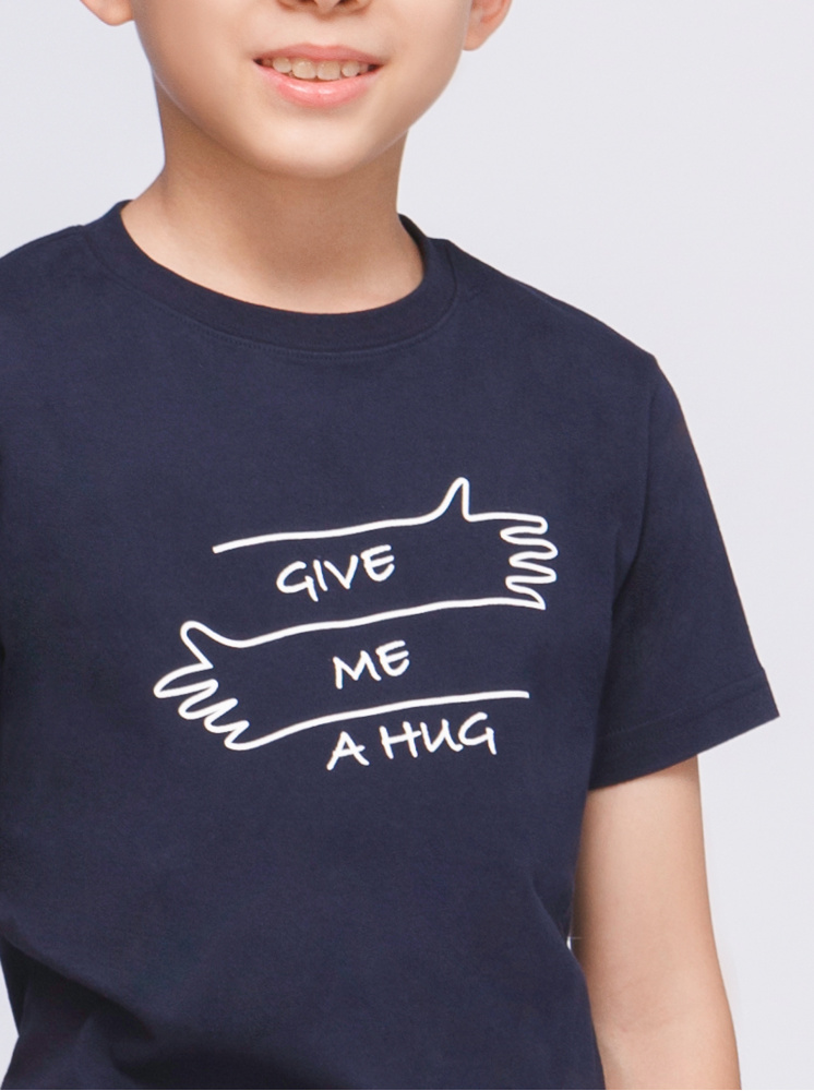 童裝擁抱印花純棉上衣-藍:選擇尺寸