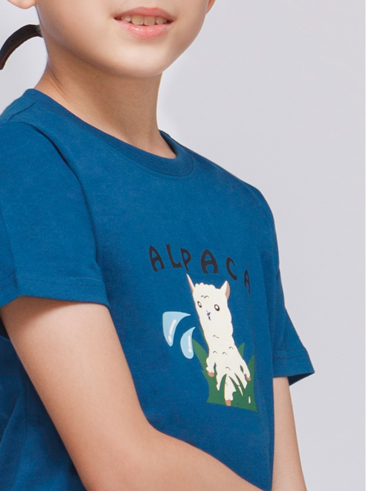 童裝趣味草泥馬印花上衣-藍綠:選擇尺寸