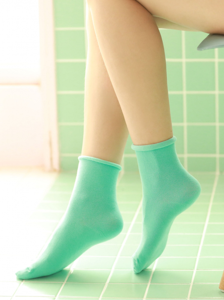 糖果色系捲邊長襪-螢光藍:選擇尺寸