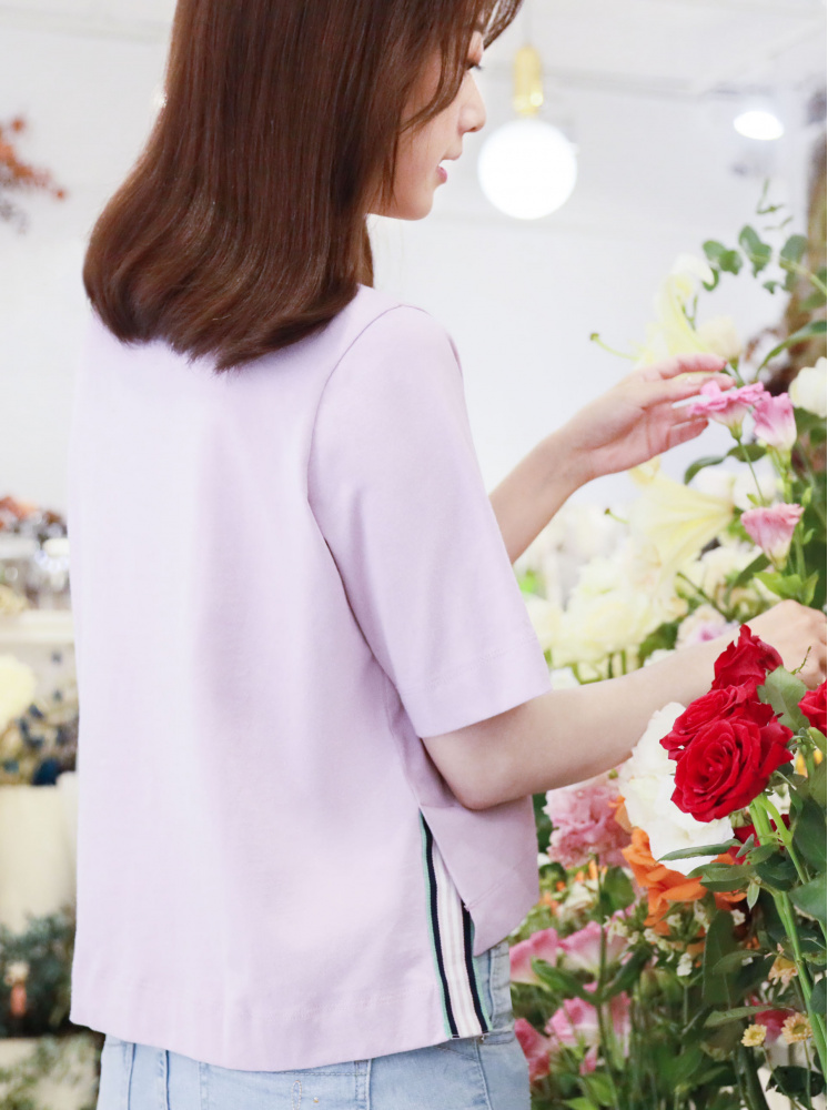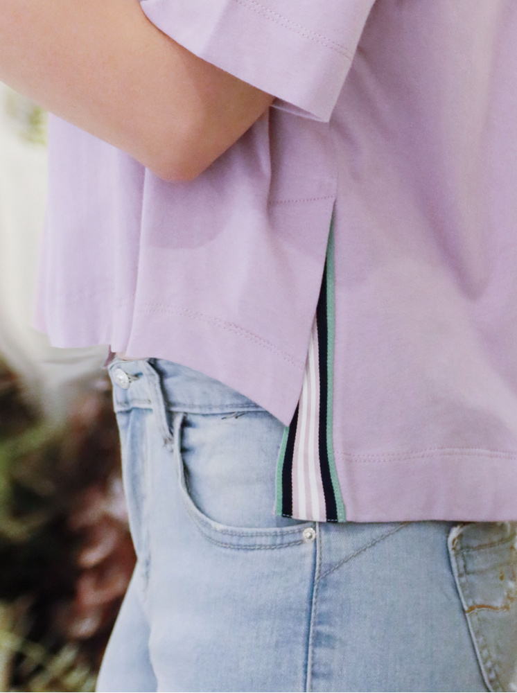 純棉側開叉撞色上衣-藕紫:選擇尺寸