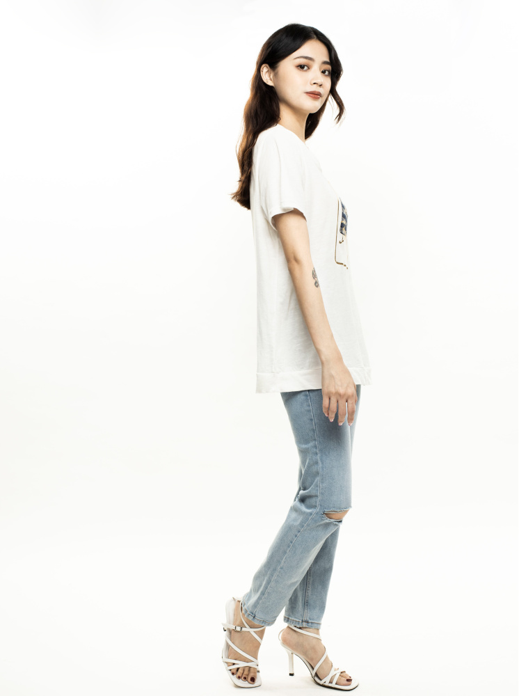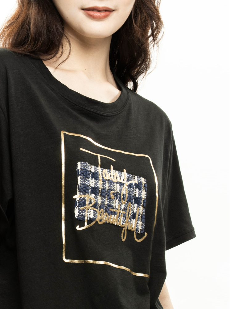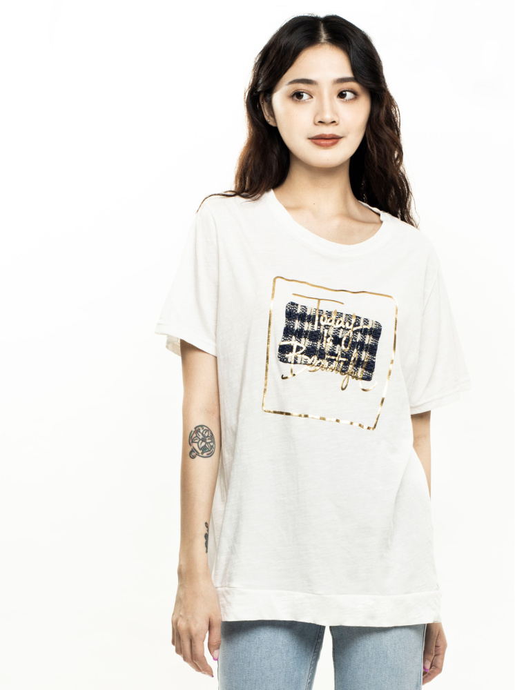小香風美好日常燙金印花T-黑:選擇尺寸