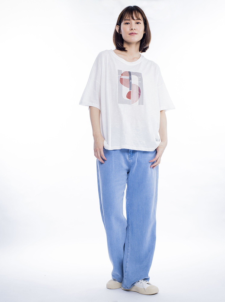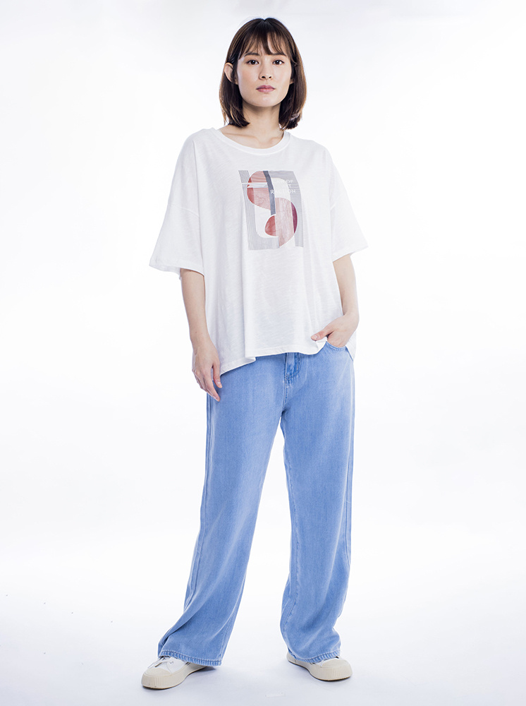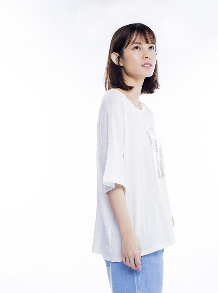• 幾何寬鬆男友T-白