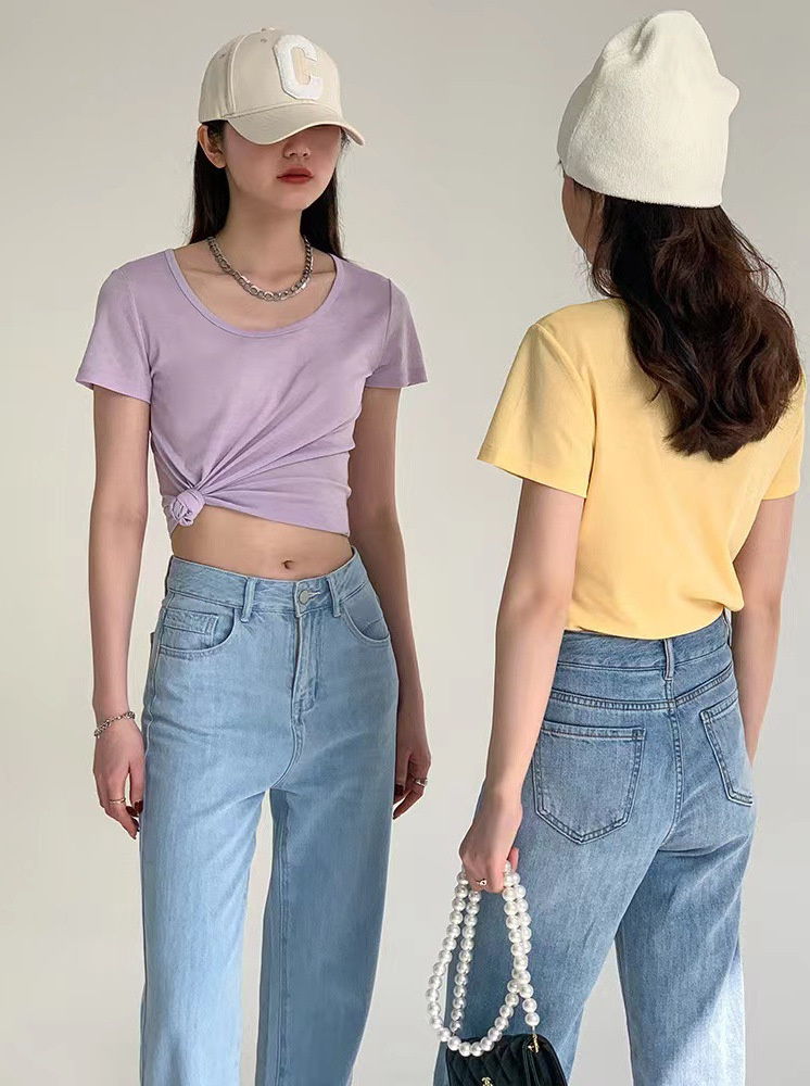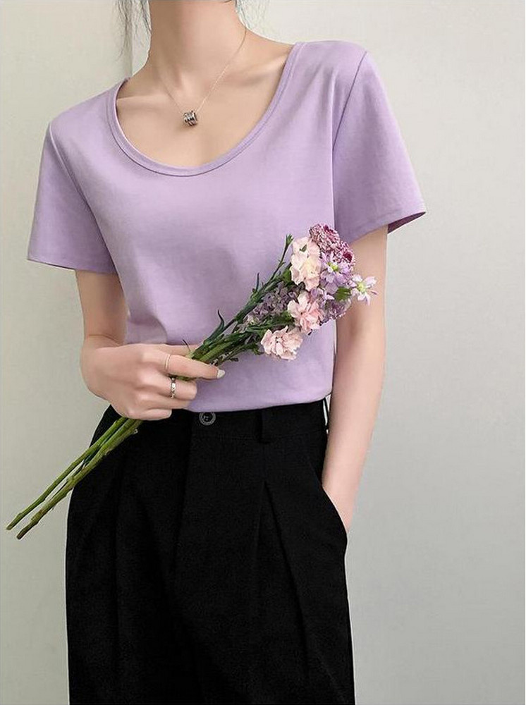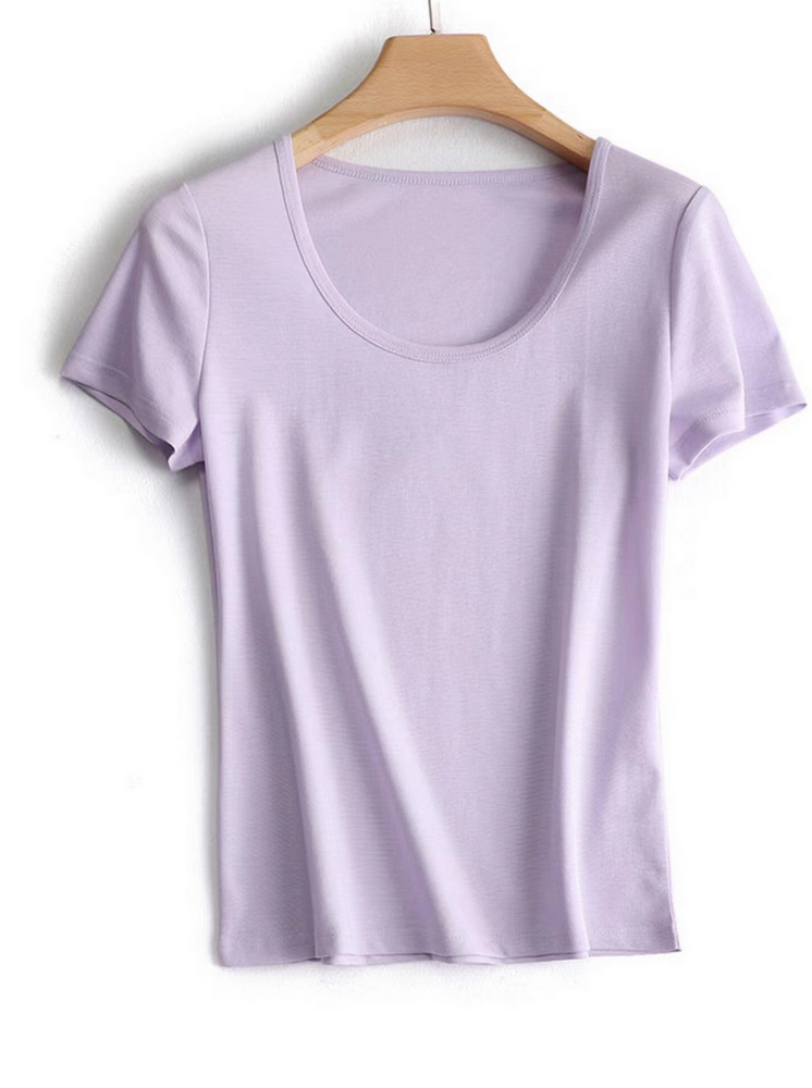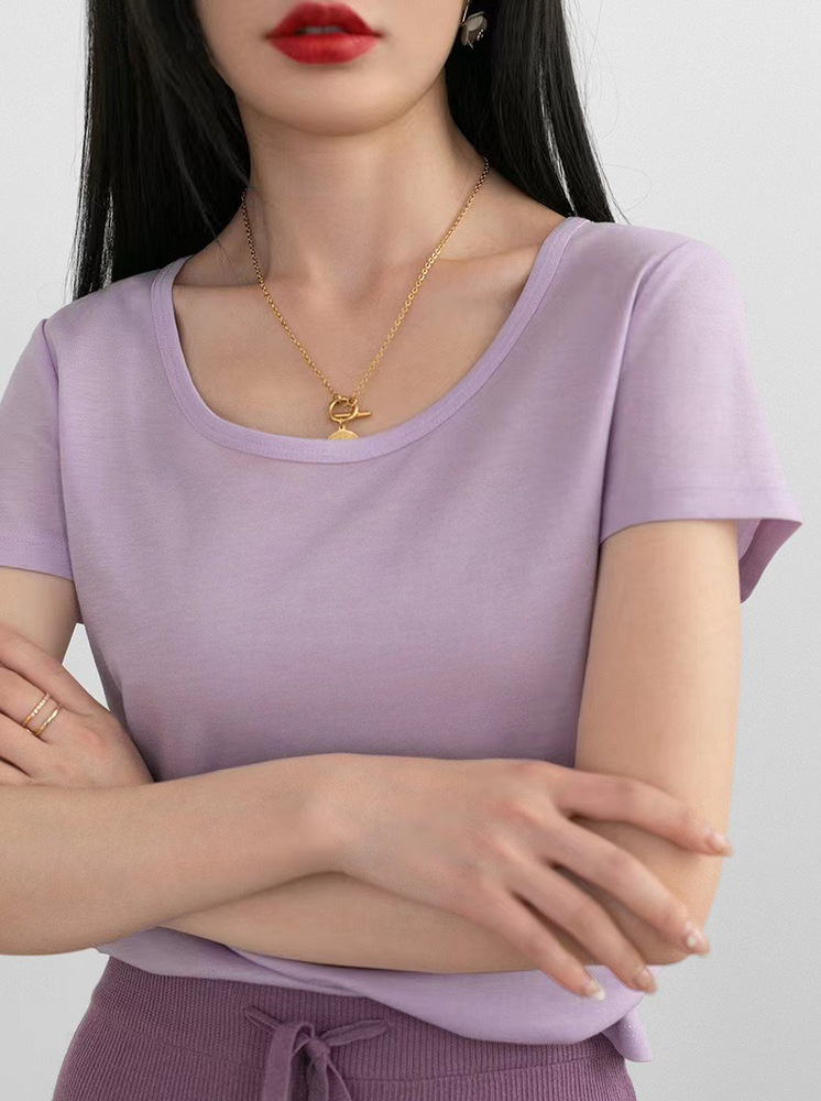 U領修身冰絲棉涼感T-紫羅蘭:選擇尺寸