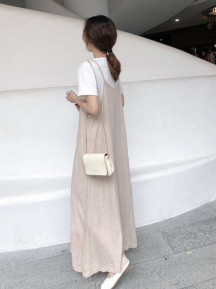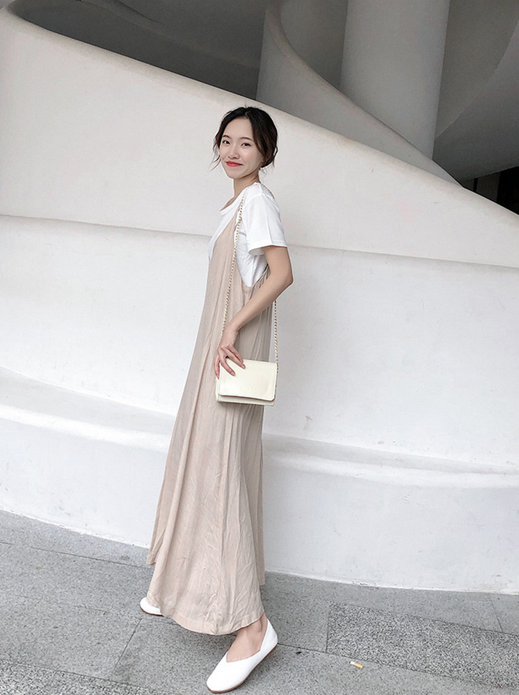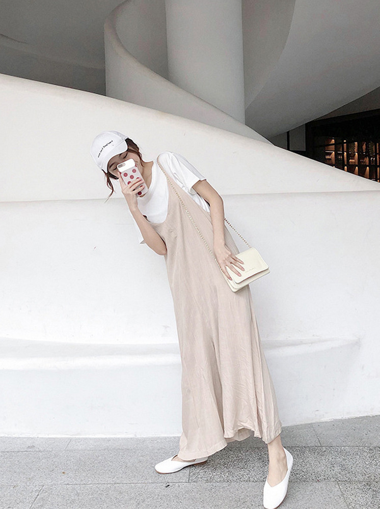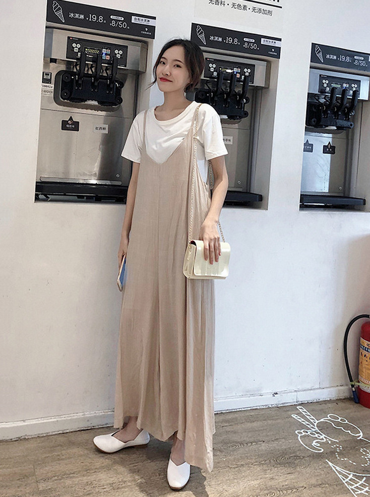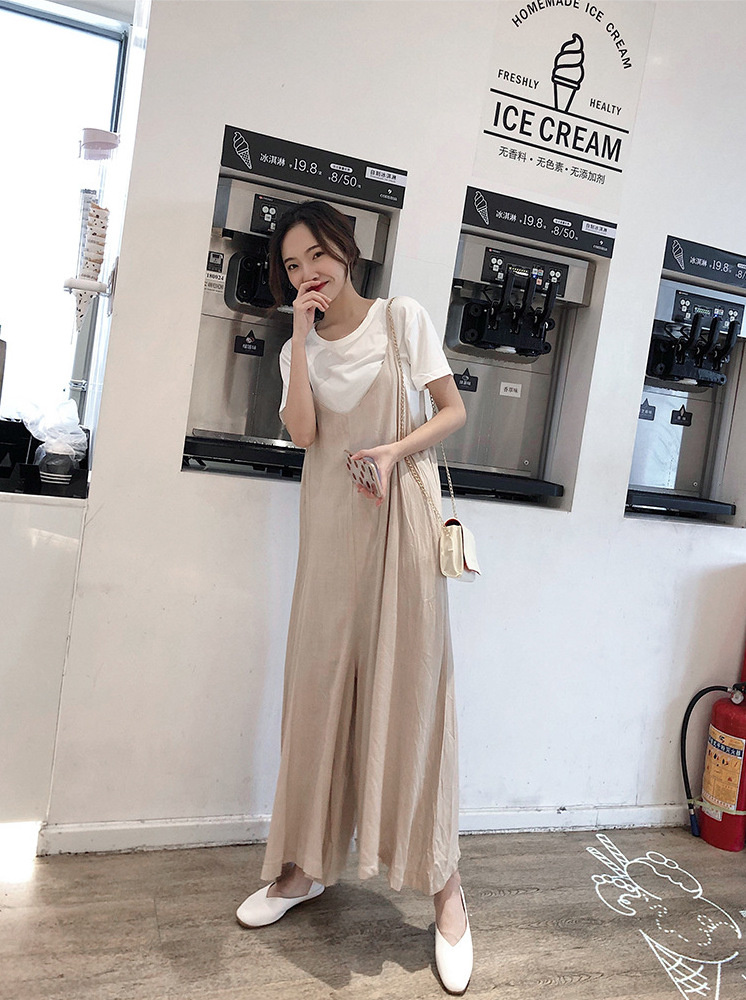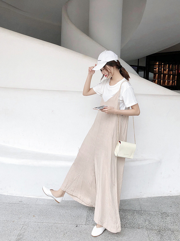 寬鬆棉麻吊帶褲-淺卡:選擇尺寸