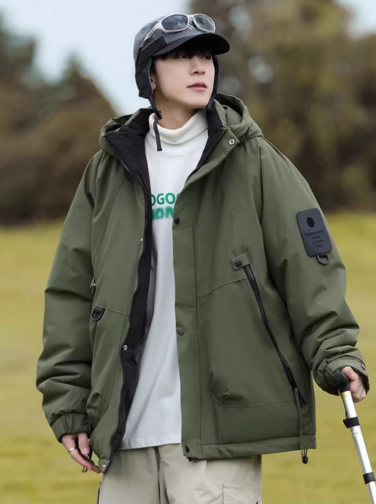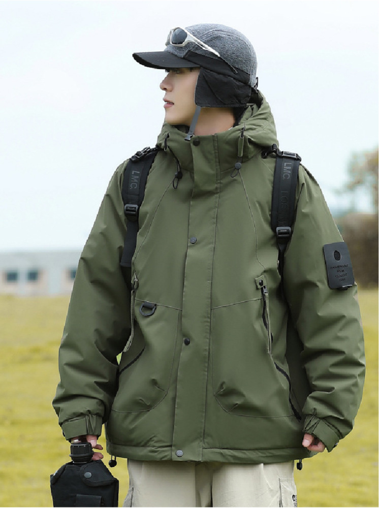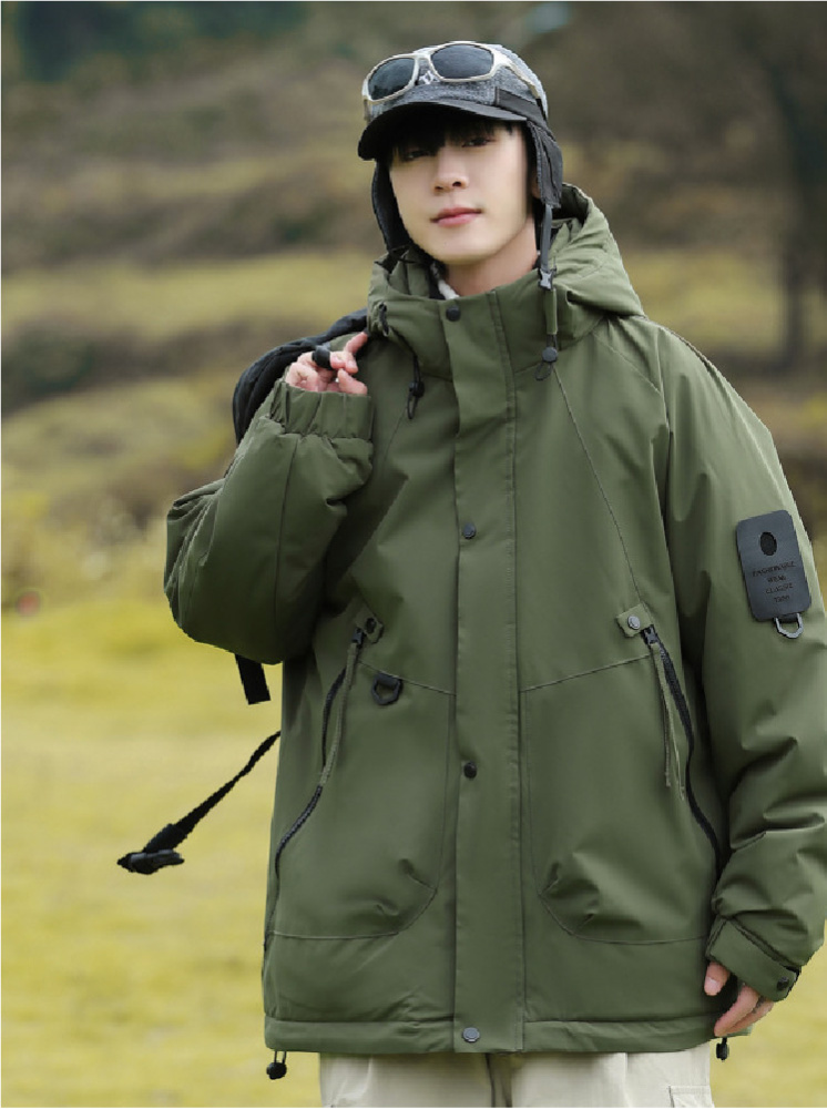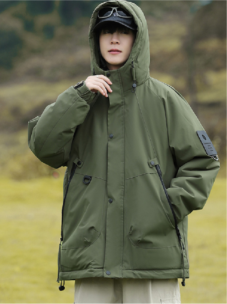 升溫防水羽棉外套-軍綠(男):選擇尺寸