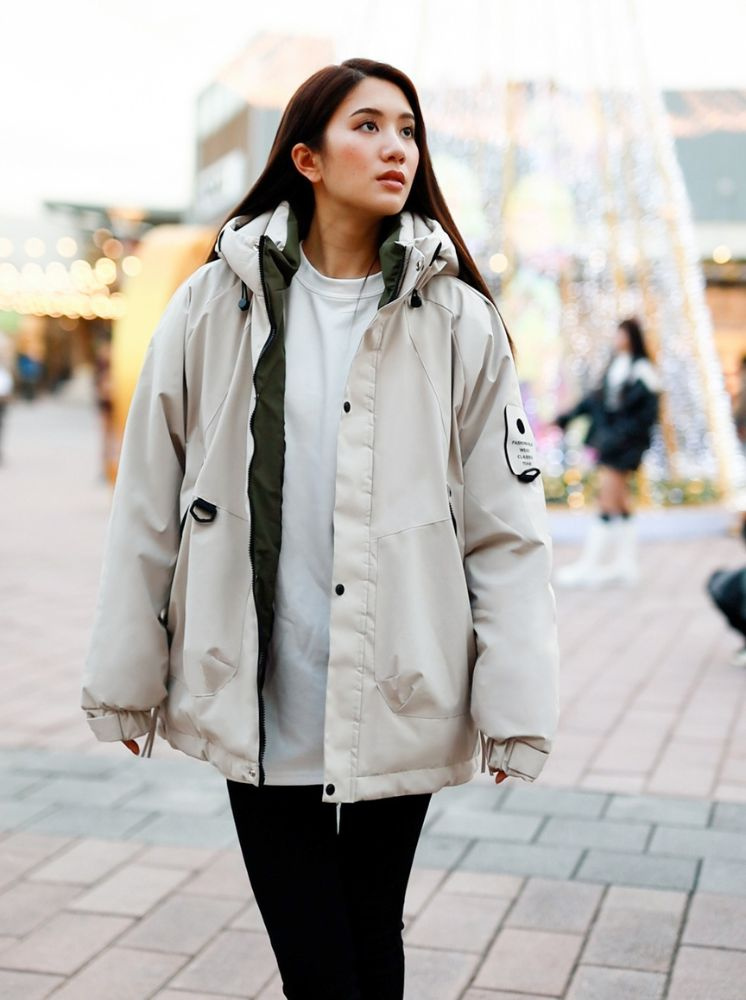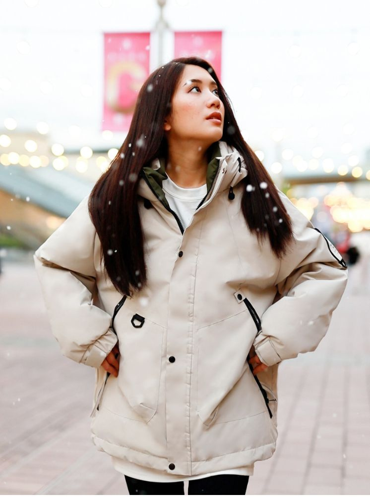 升溫防水羽棉外套-米白:選擇尺寸
