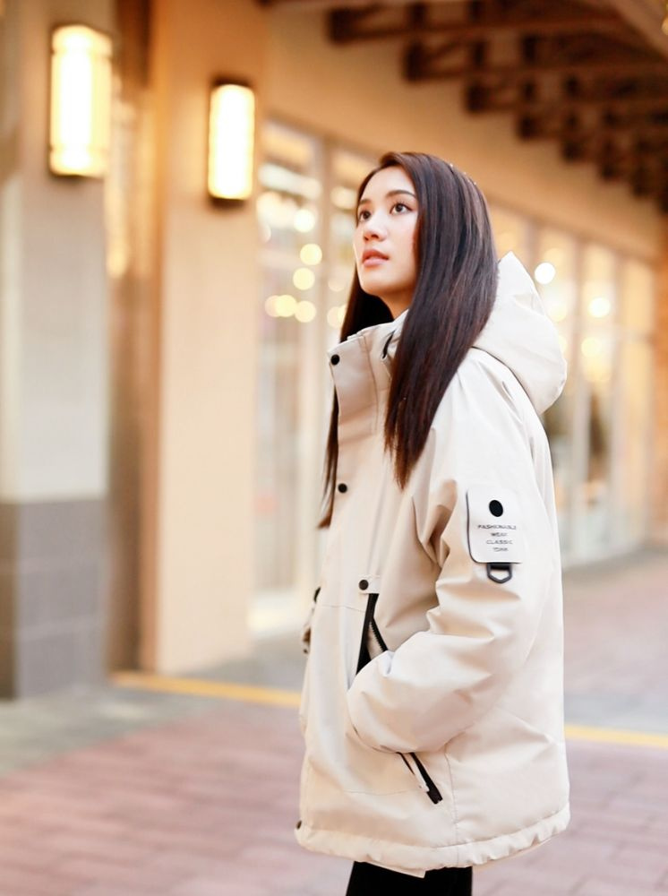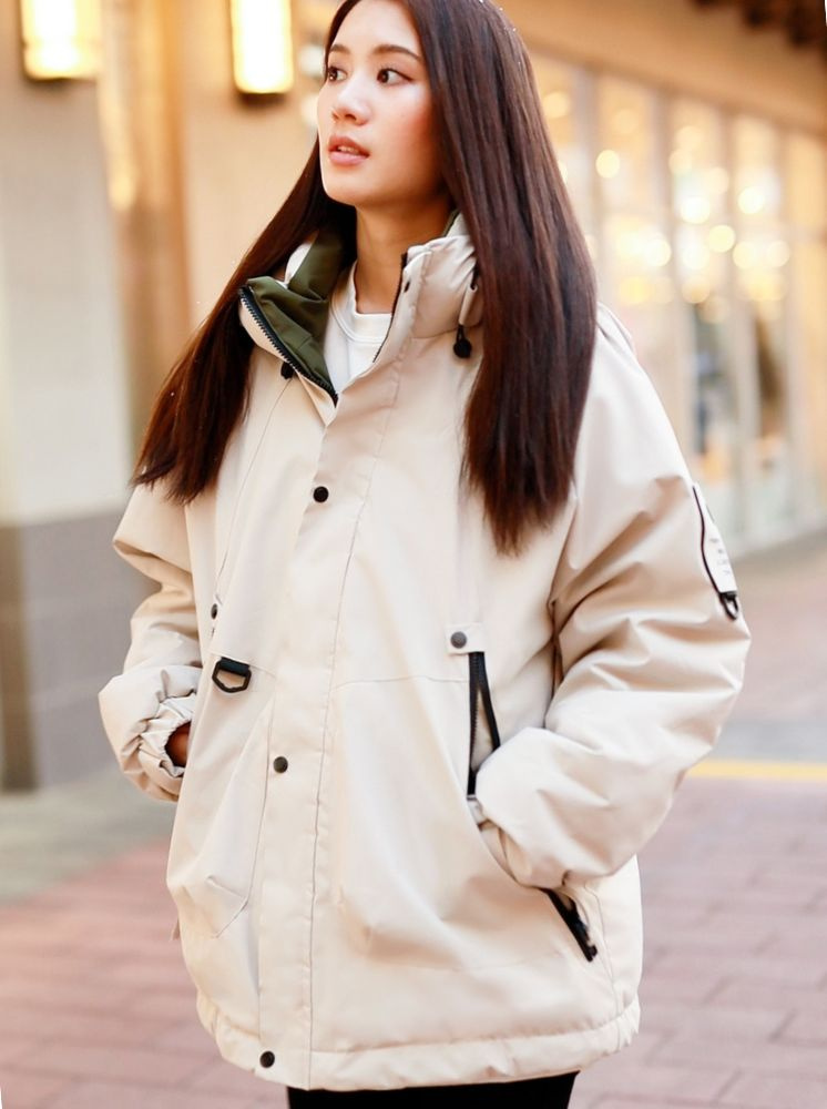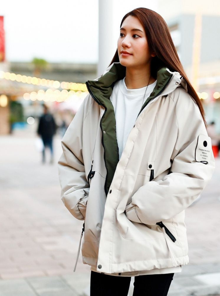 升溫防水羽棉外套-米白