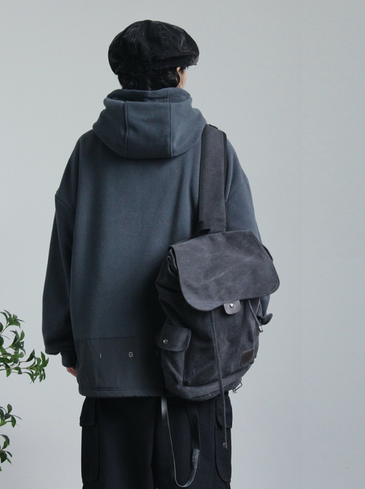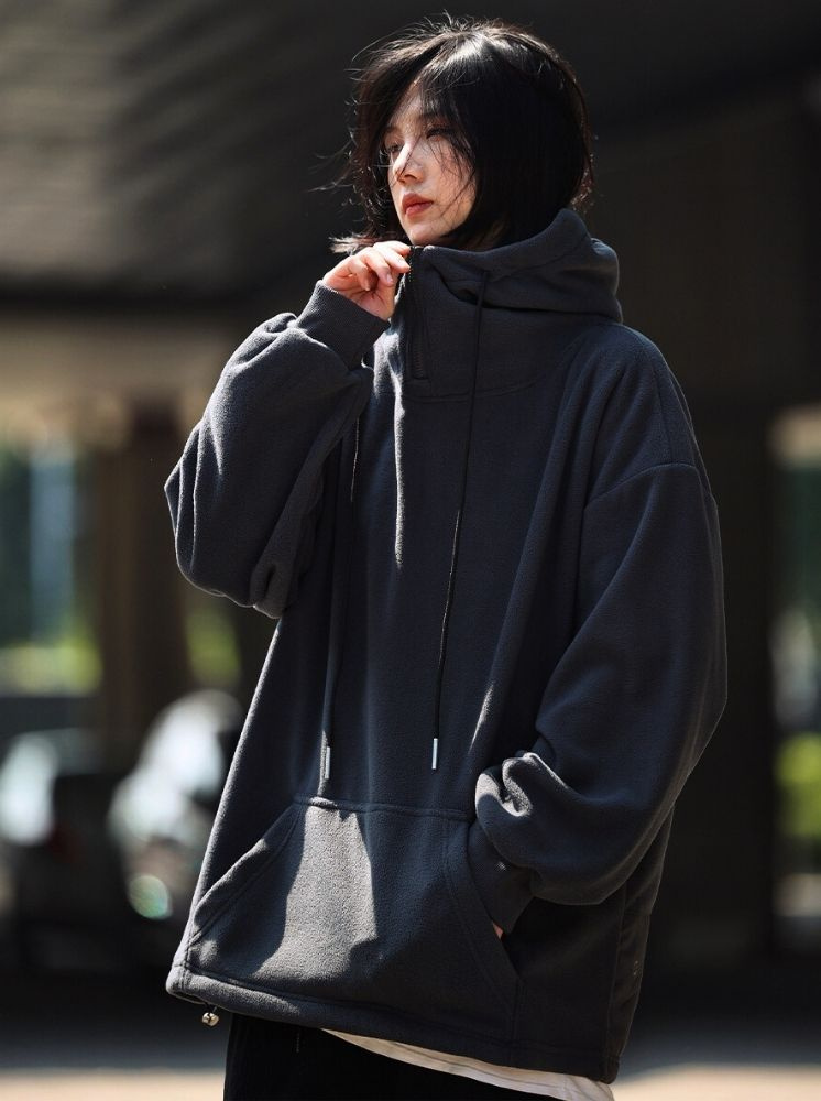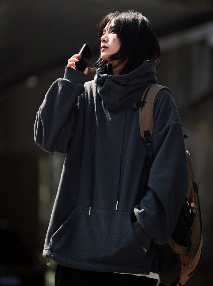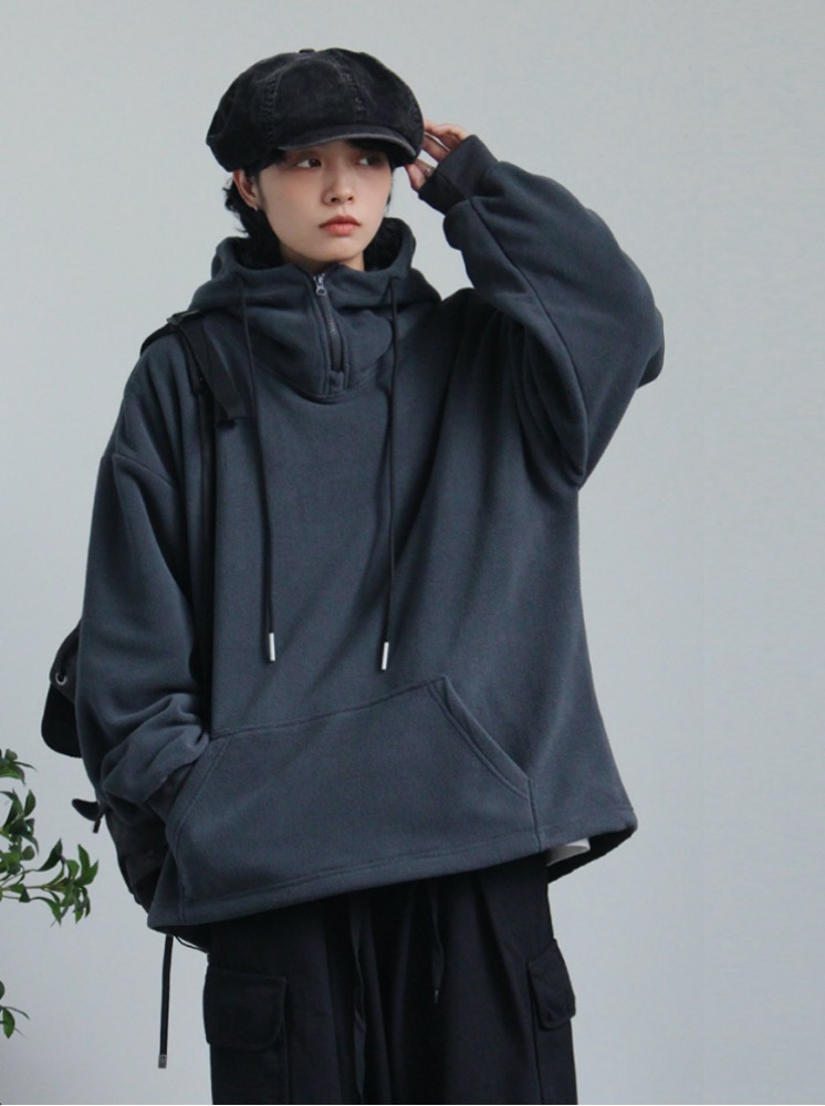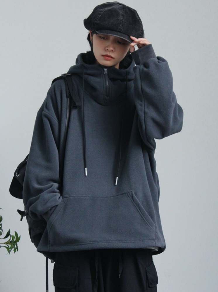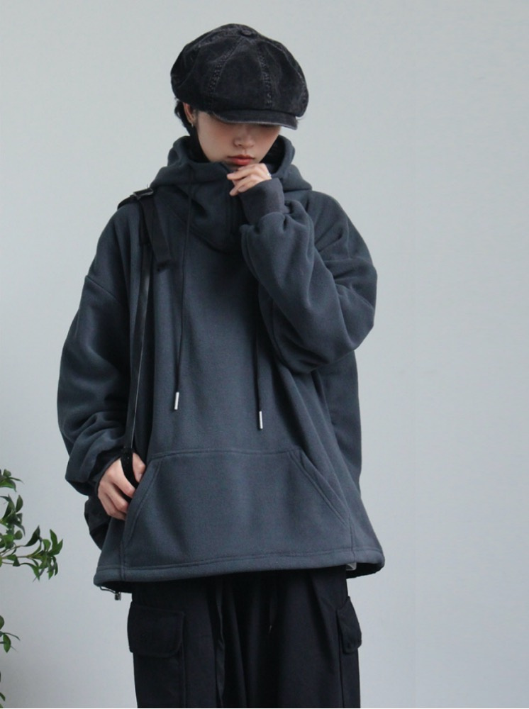 OVERSIZE升溫搖粒絨帽T-灰藍