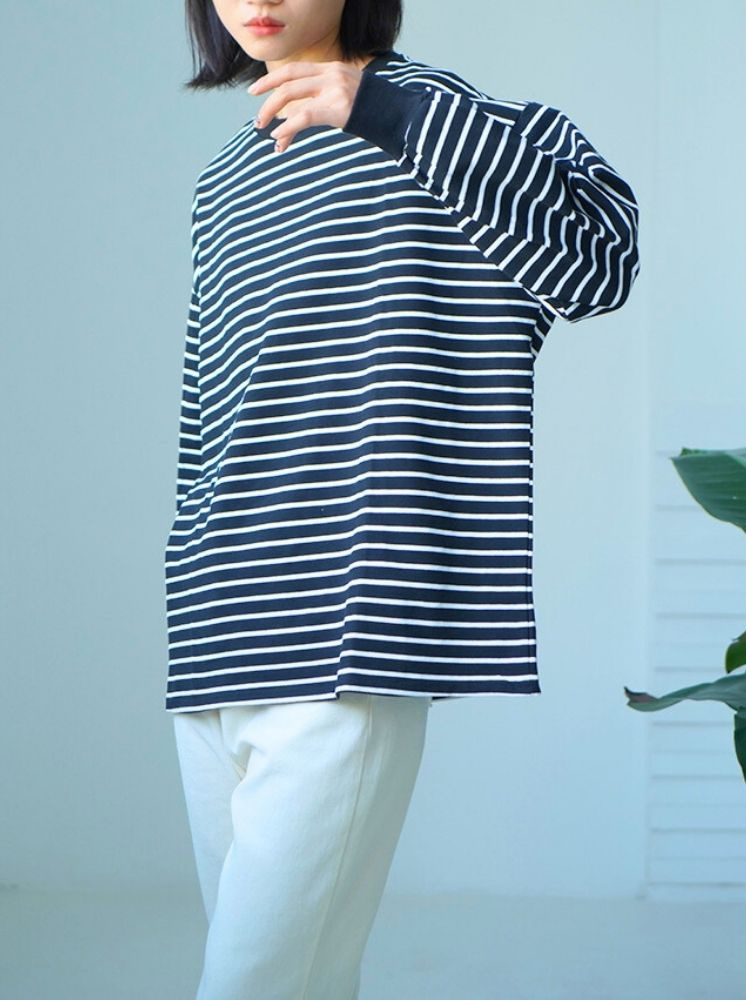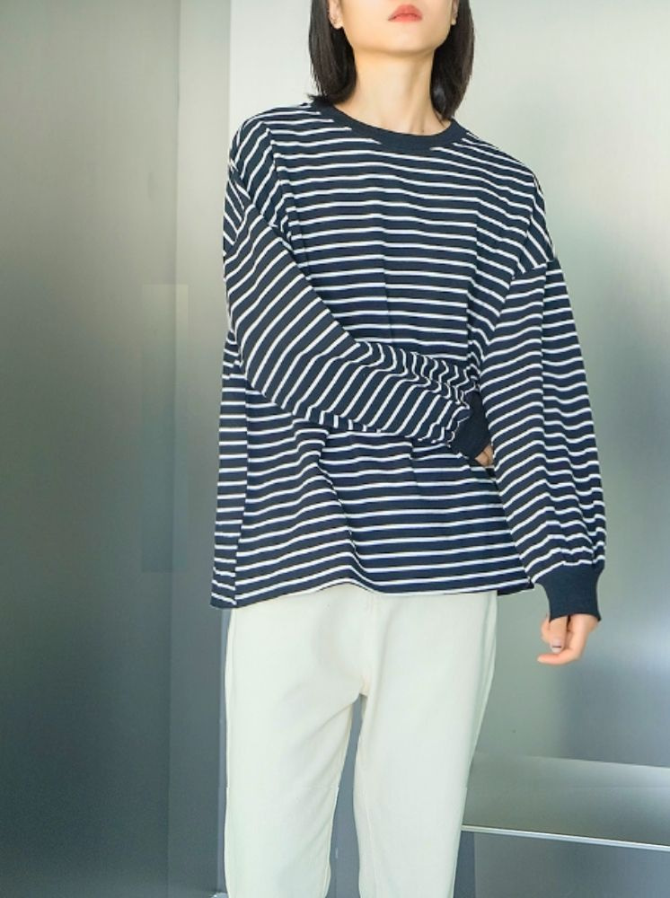 寬鬆條紋長袖棉T-黑底白條:選擇尺寸