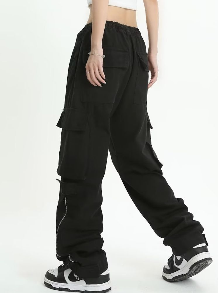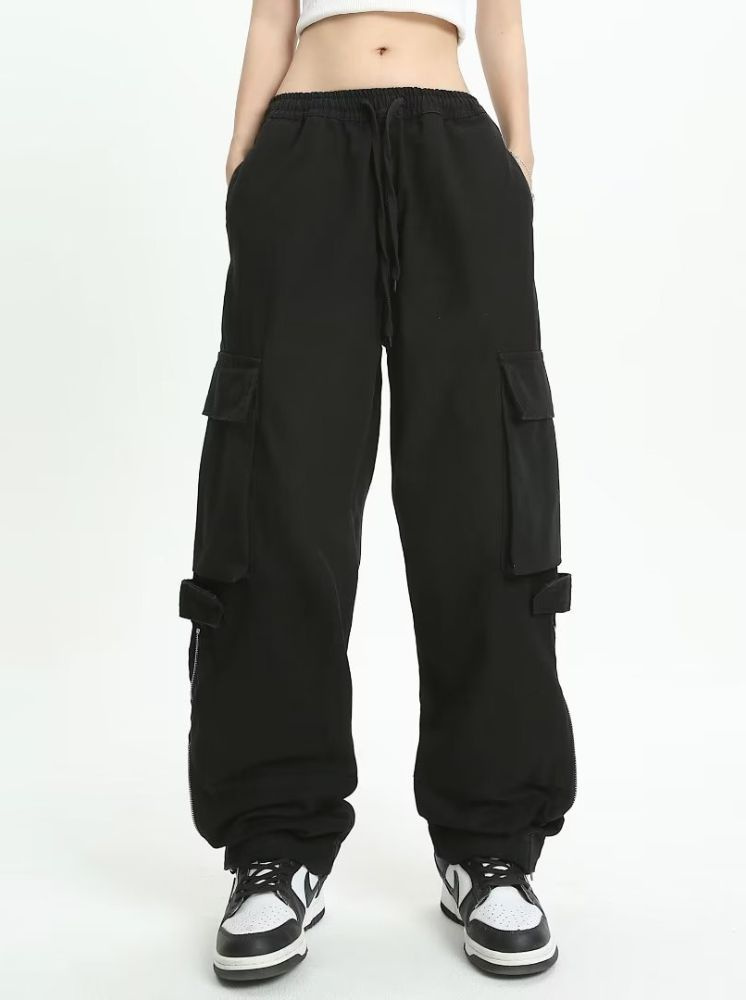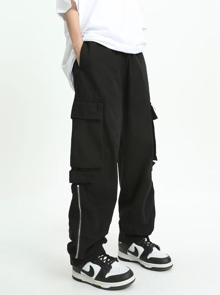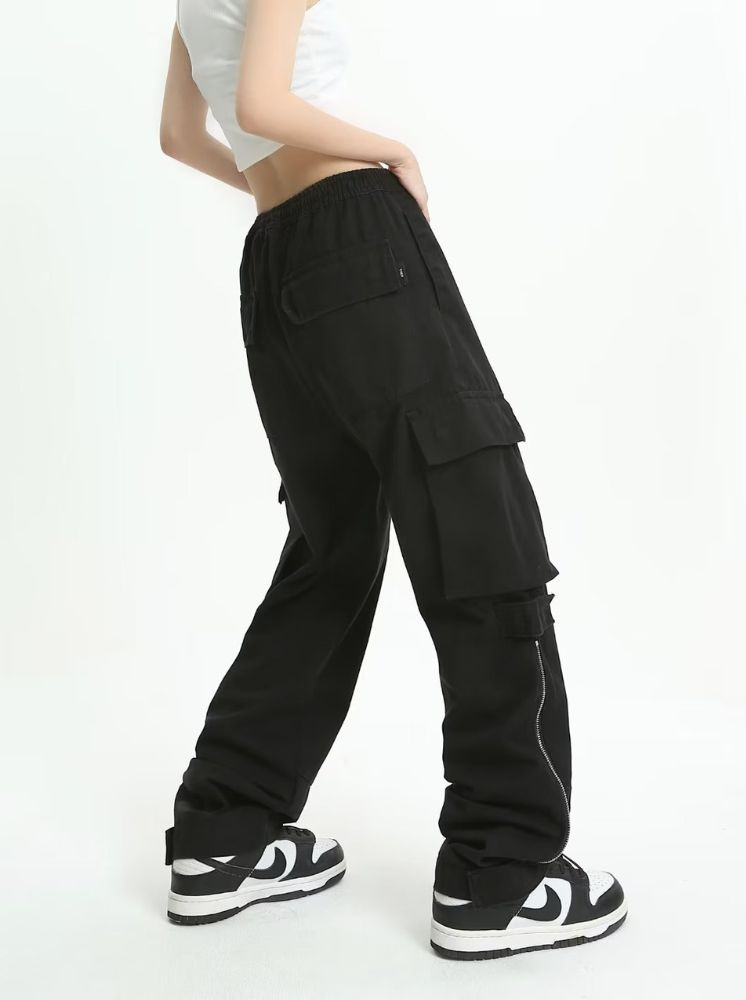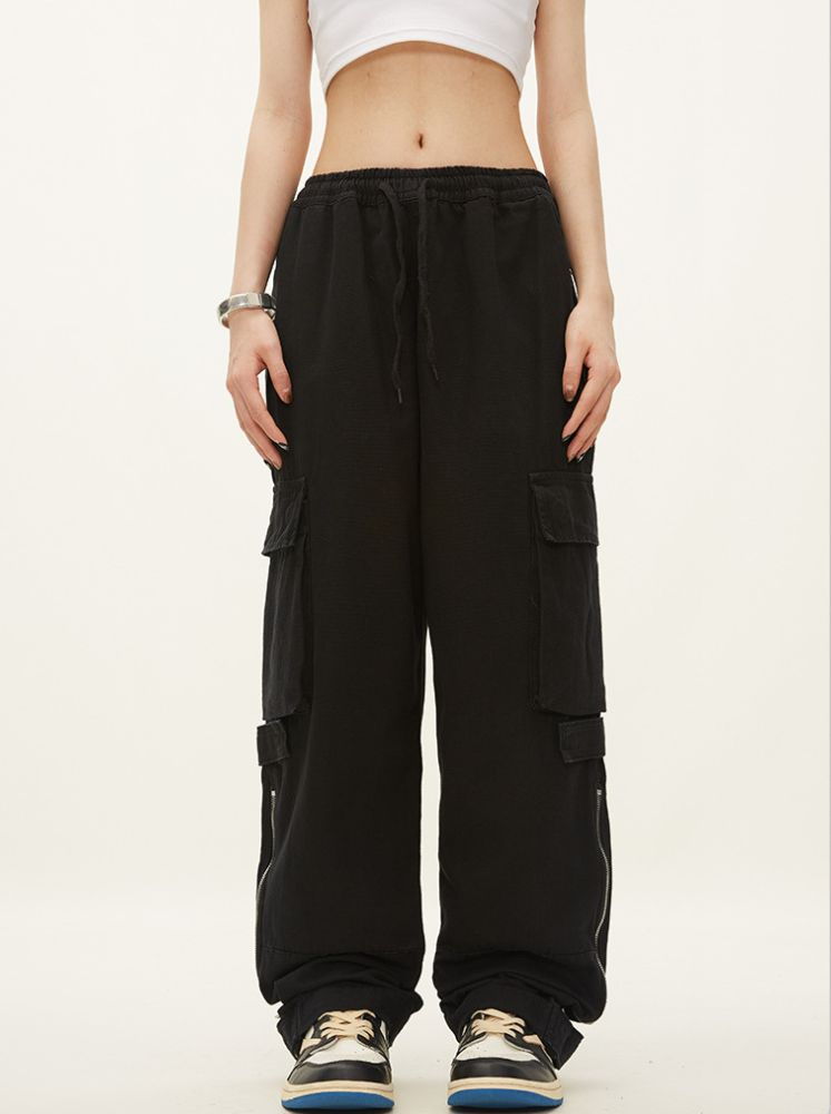 大口袋個性工裝褲-黑