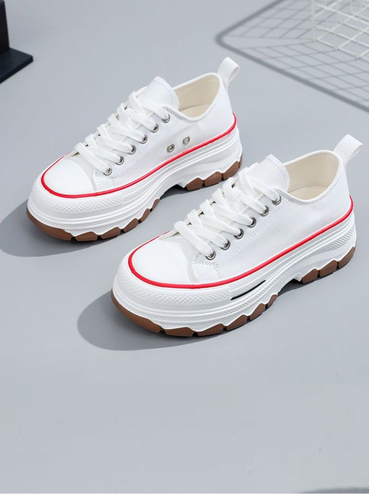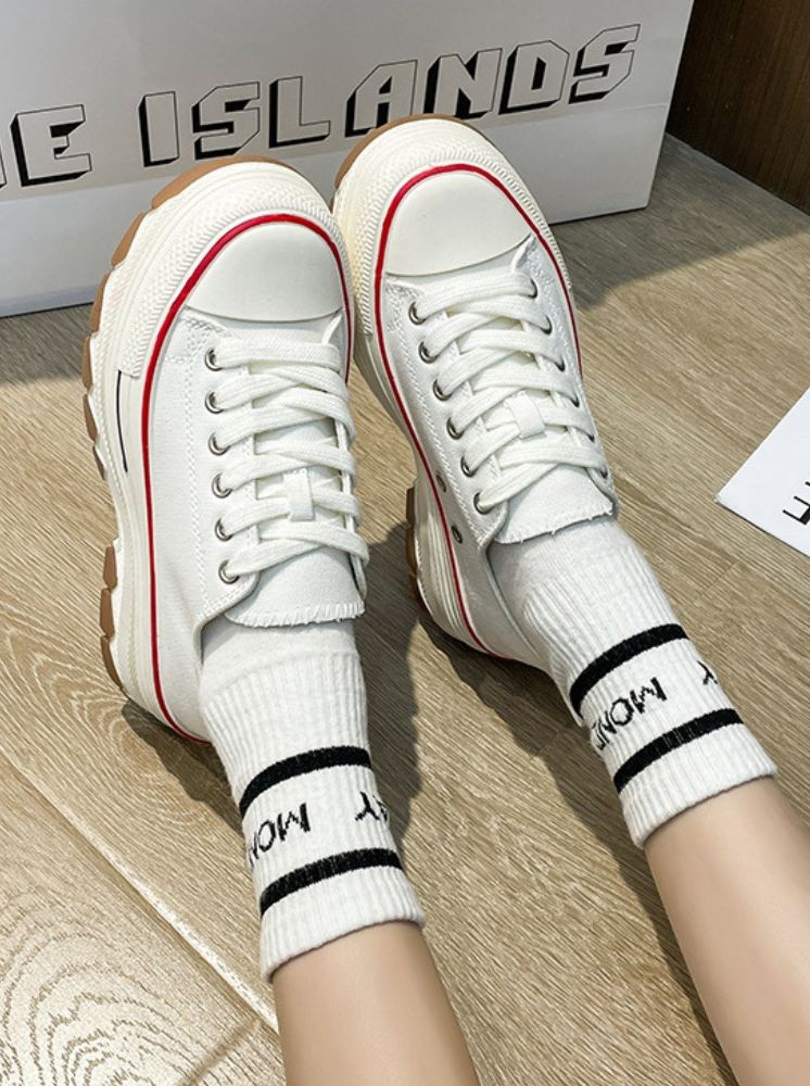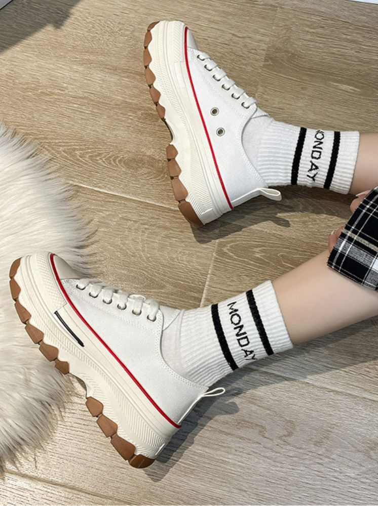 厚底撞色帆布鞋-白