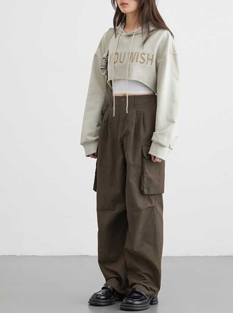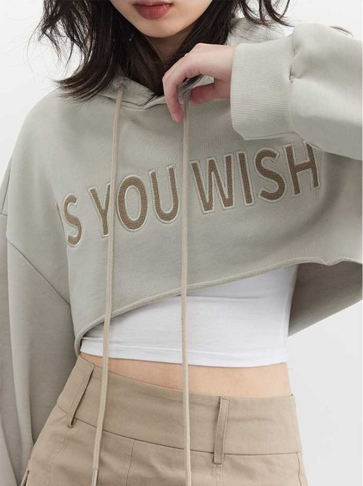 美式復古短版帽T-杏(薄款):選擇尺寸