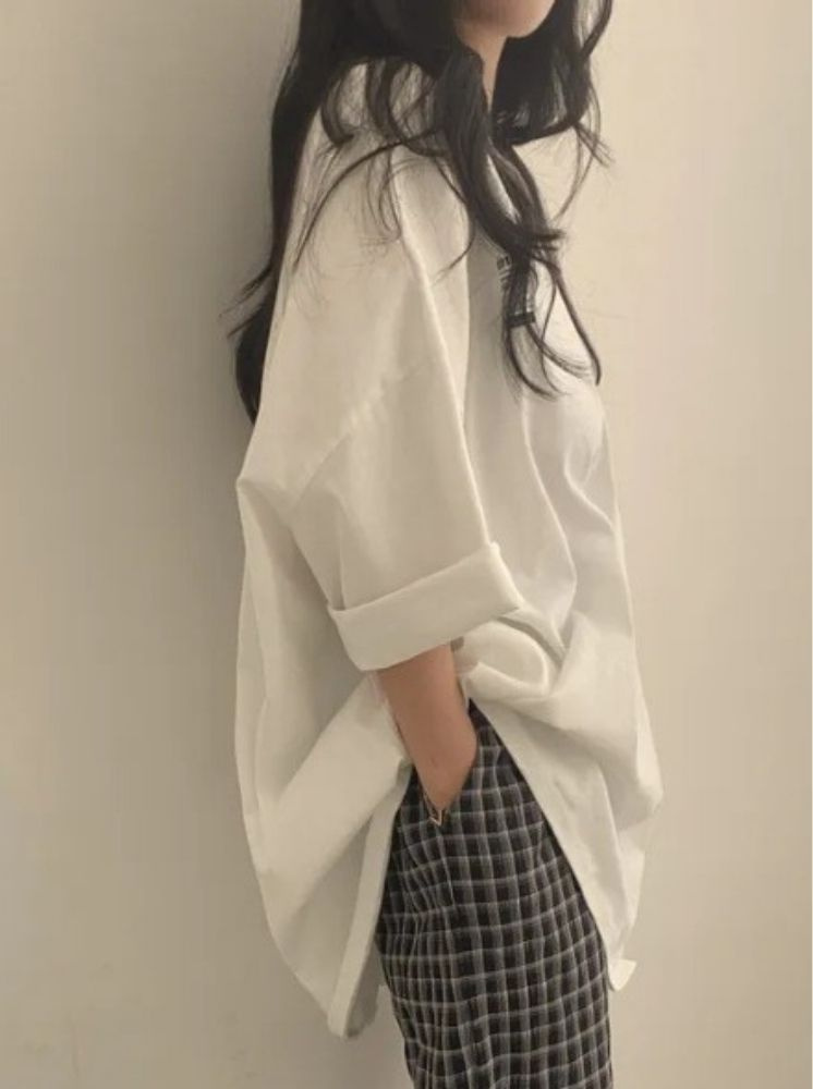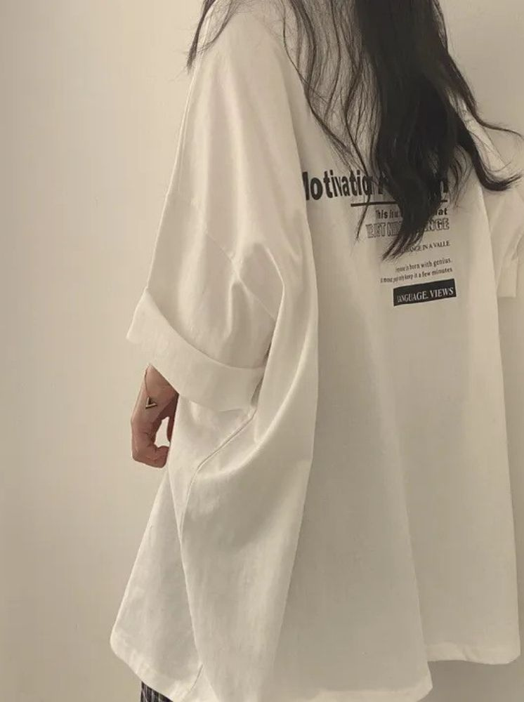 韓版落肩寬鬆棉T-白:選擇尺寸
