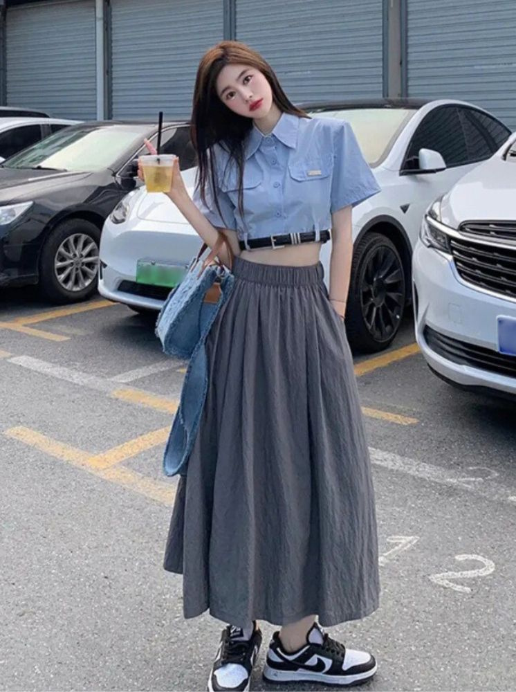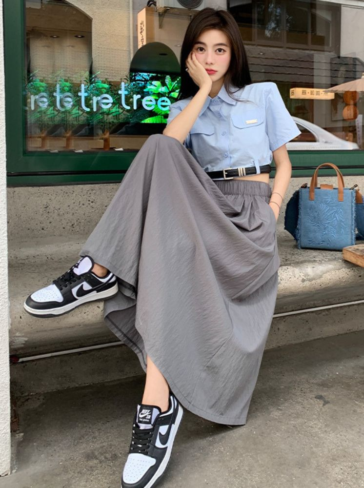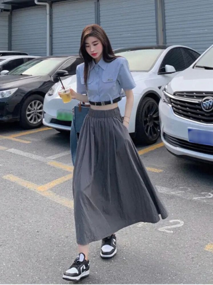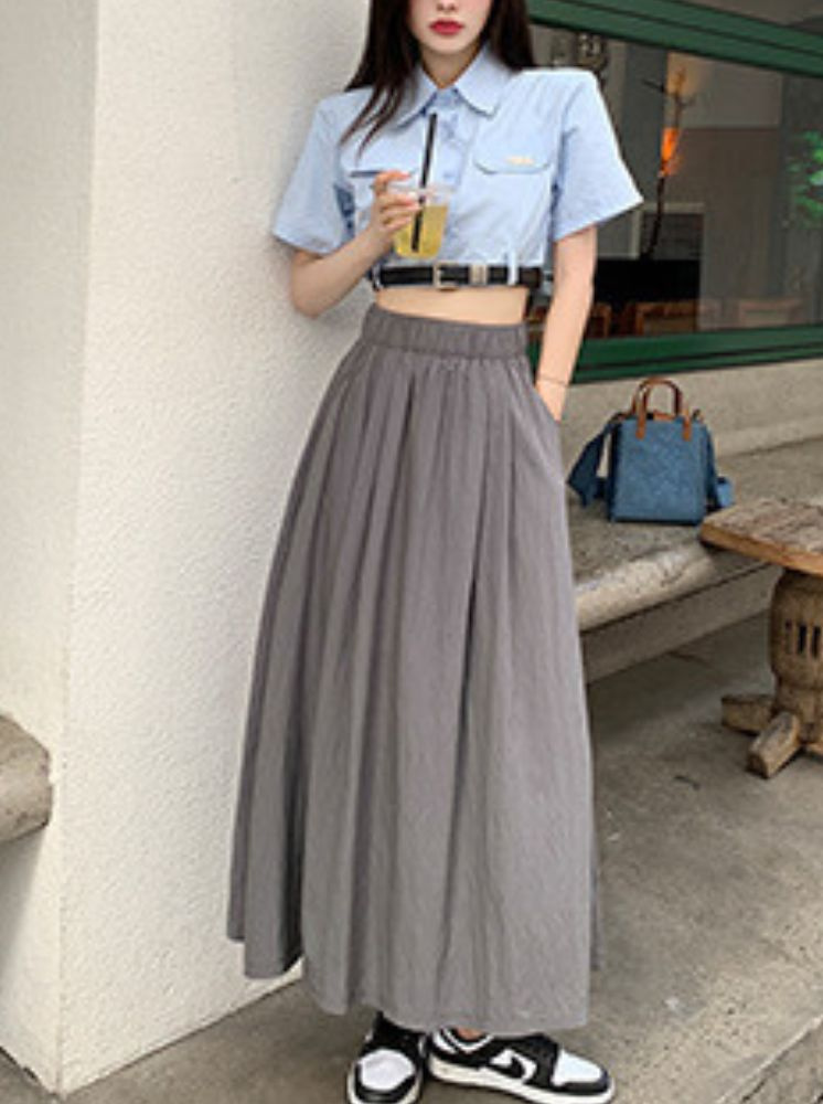 皺褶感鬆緊高腰山本裙-深灰:選擇尺寸