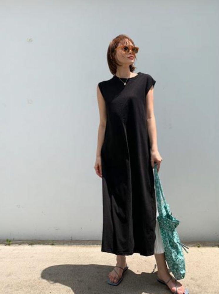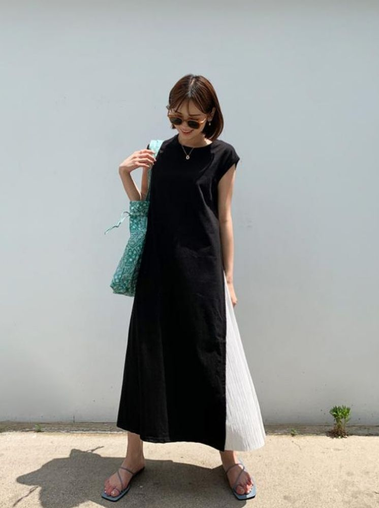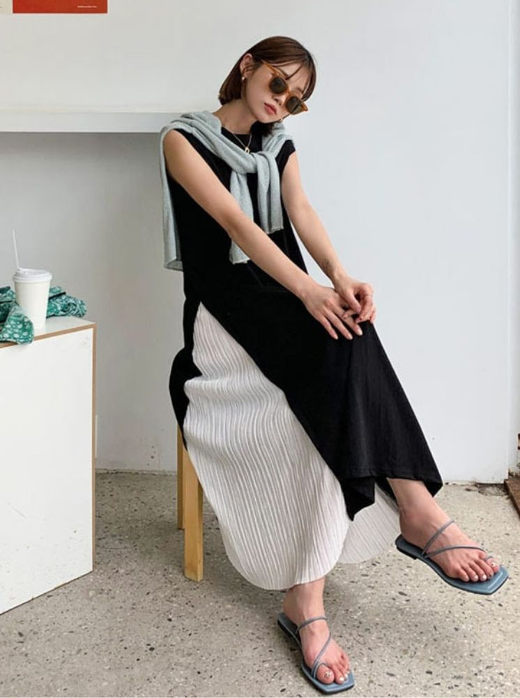 側拼接百褶修身洋裝-黑:選擇尺寸
