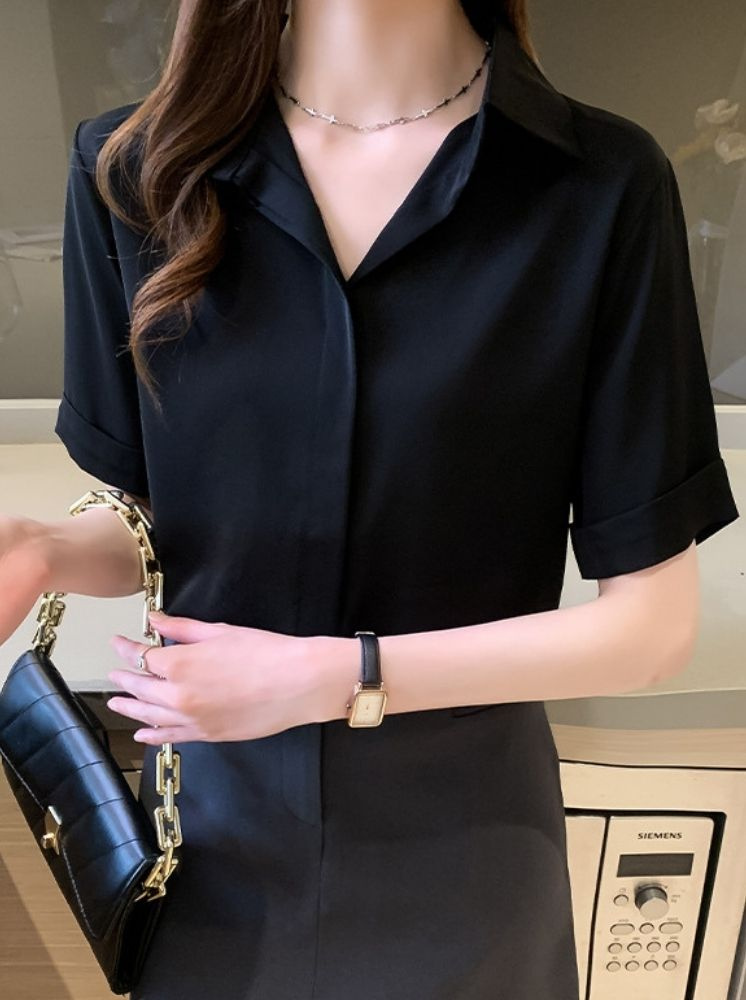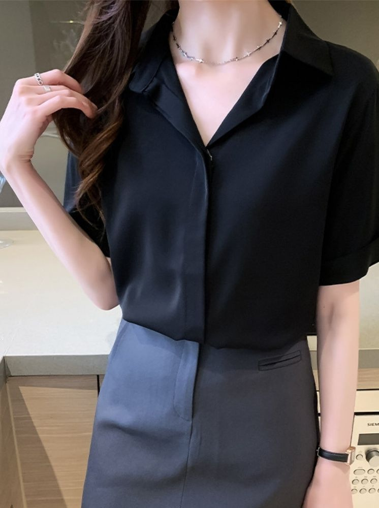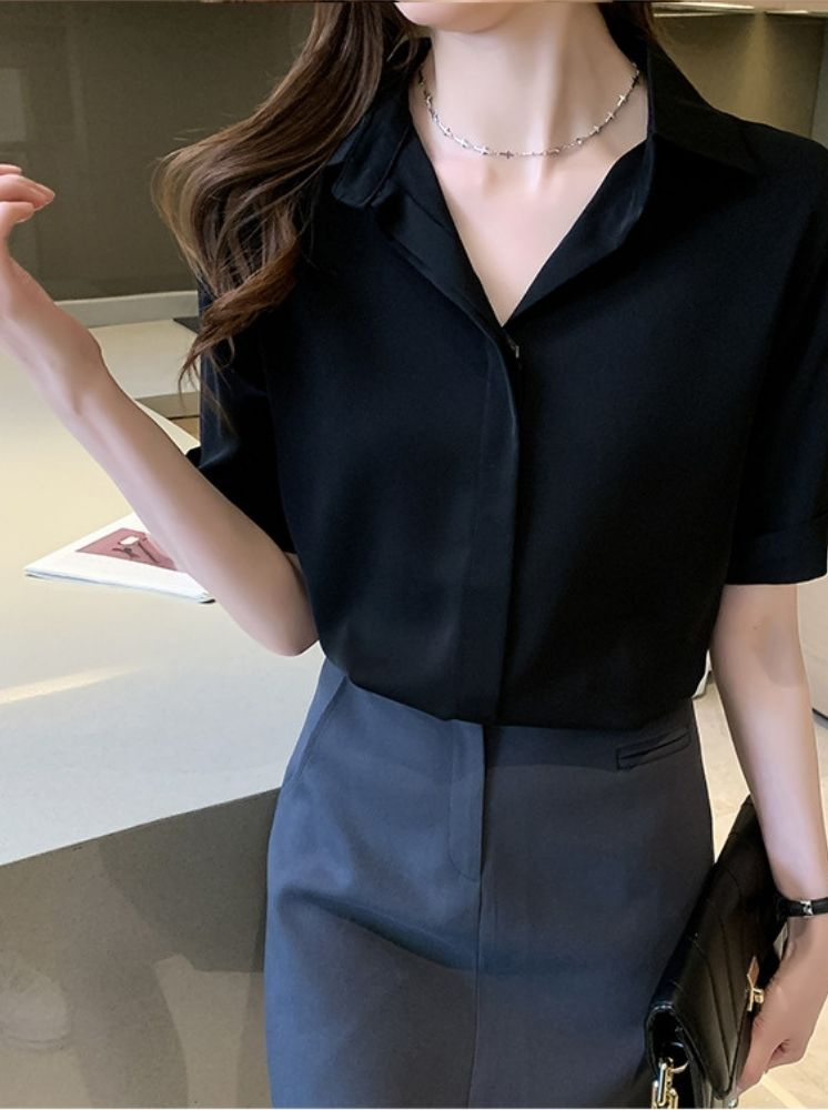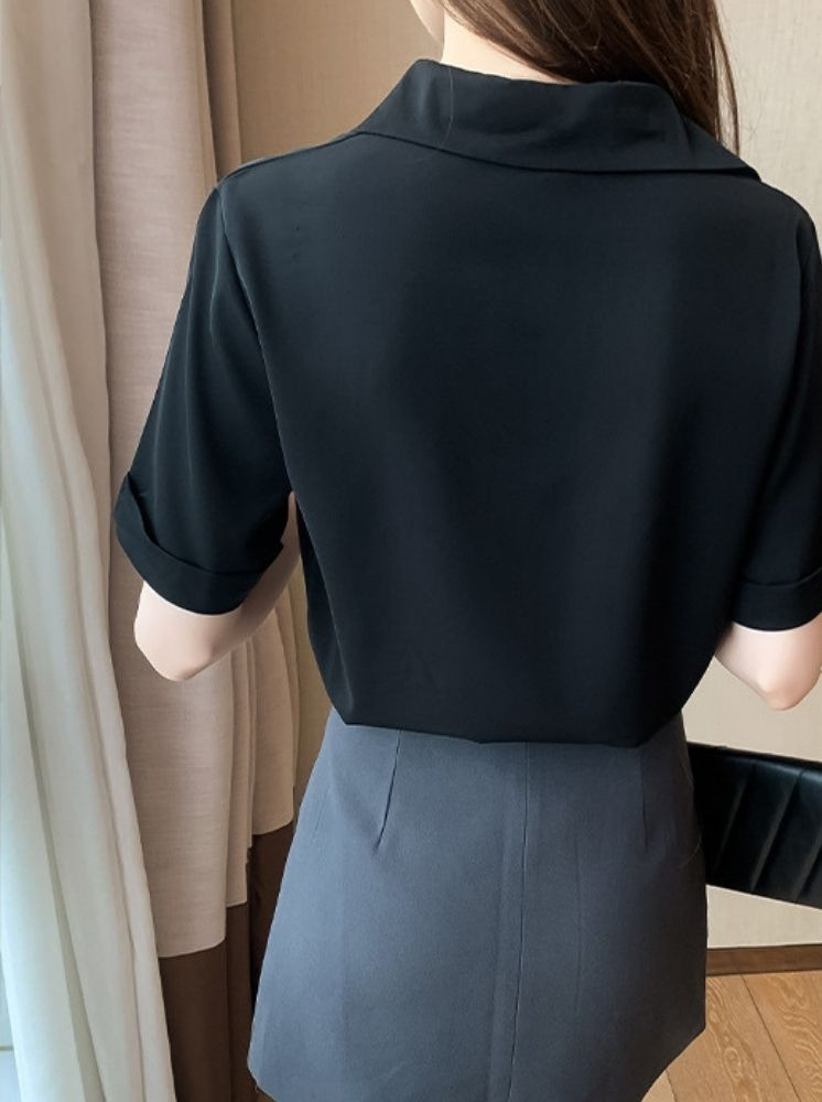素雅短袖雪紡襯衫-黑:選擇尺寸