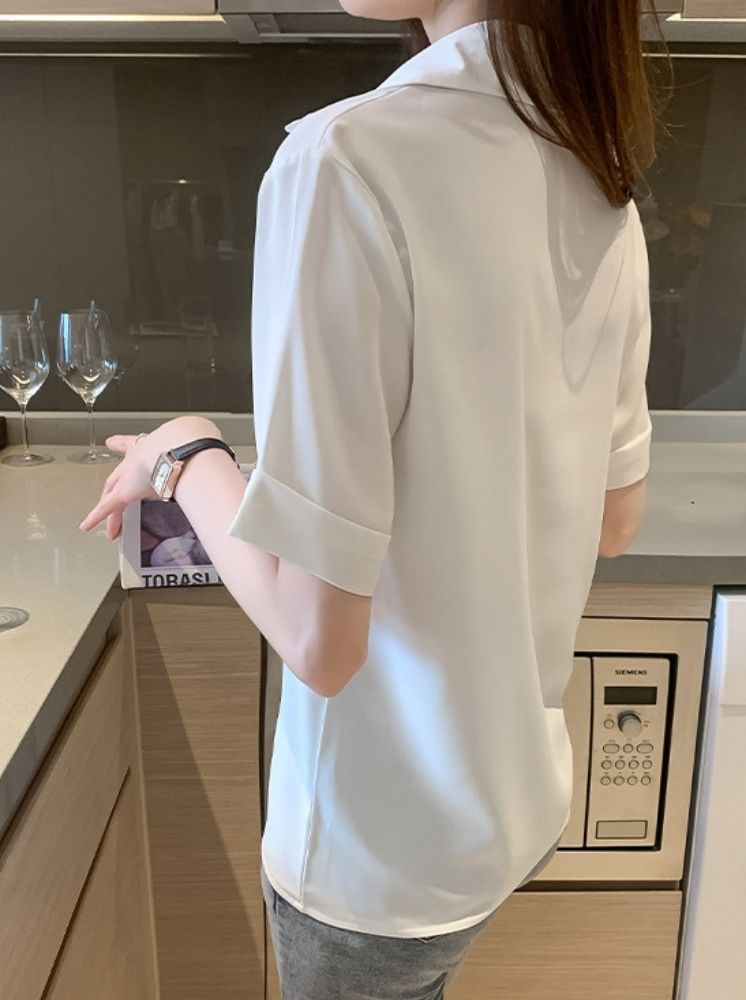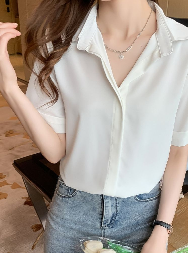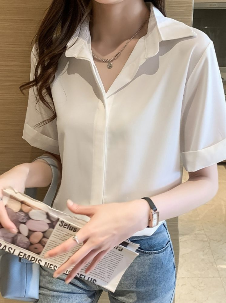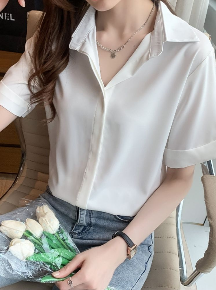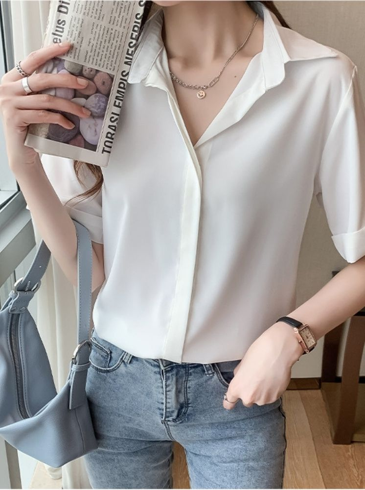素雅短袖雪紡襯衫-白:選擇尺寸
