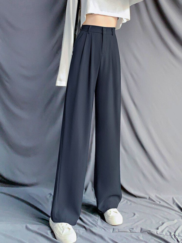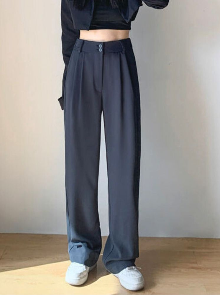 高腰修身直筒西裝褲-深灰:選擇尺寸
