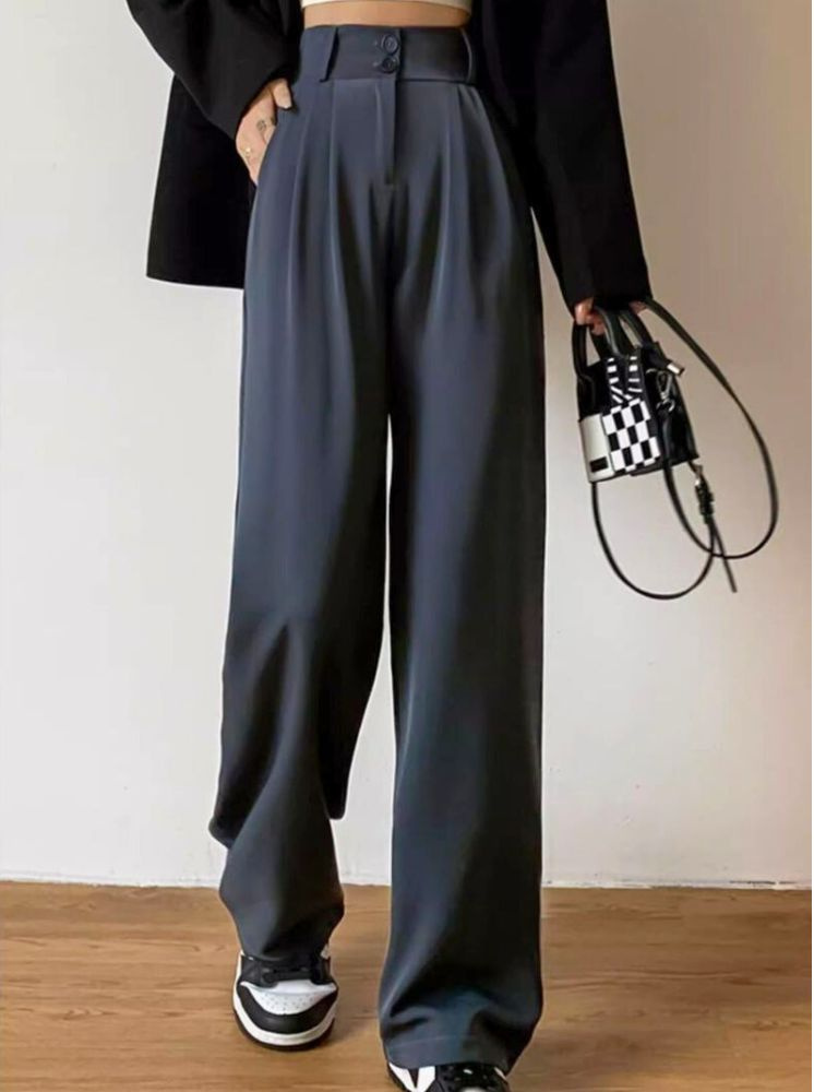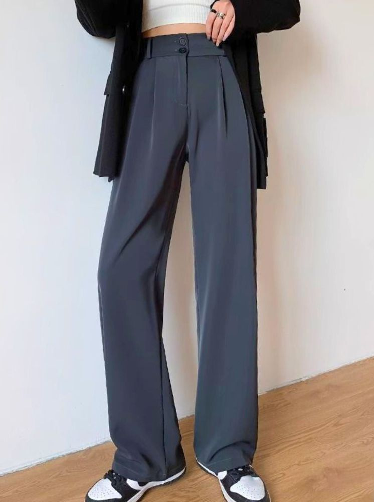 高腰修身直筒西裝褲-深灰