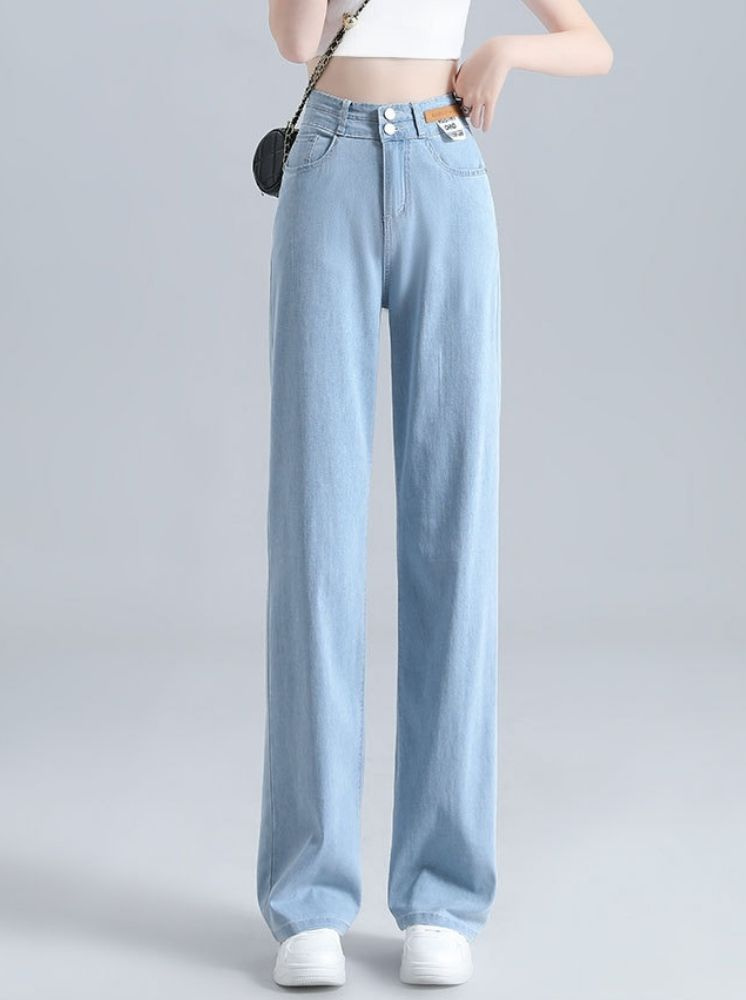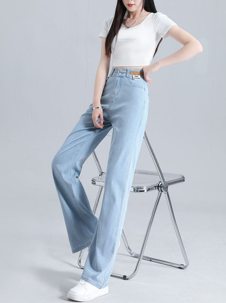 後鬆緊直筒褲-淺藍:選擇尺寸