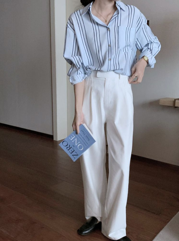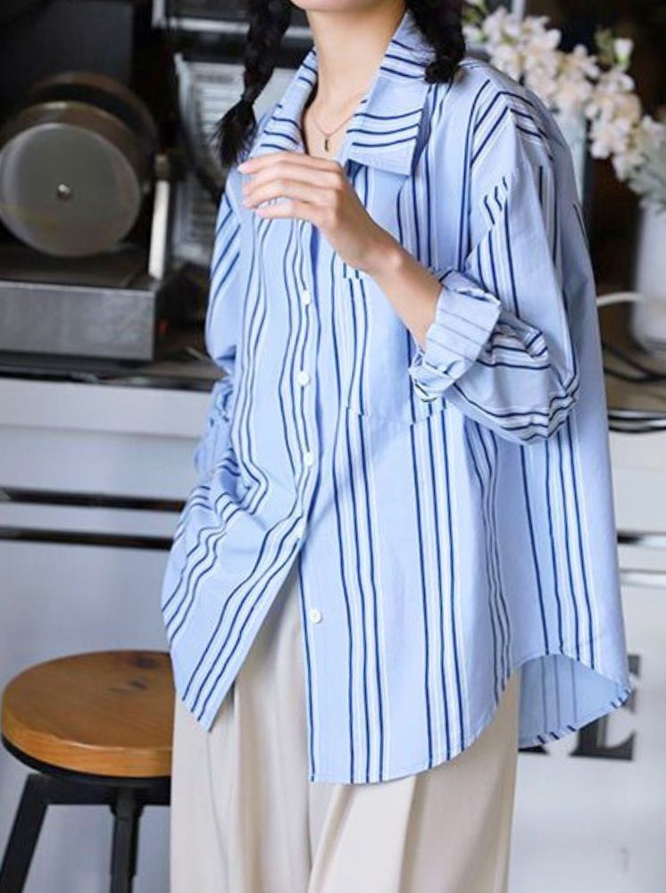 韓版氣質條紋襯衫-藍:選擇尺寸