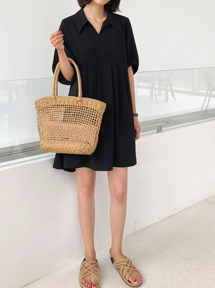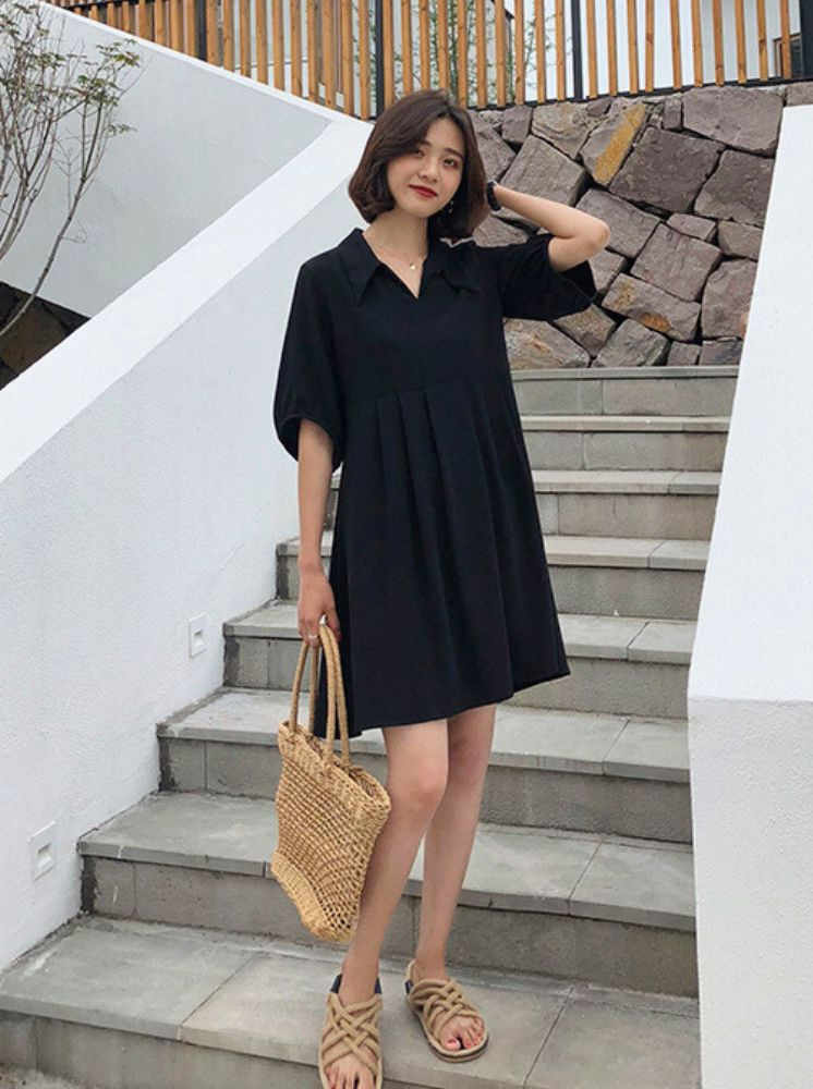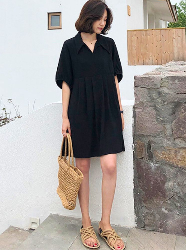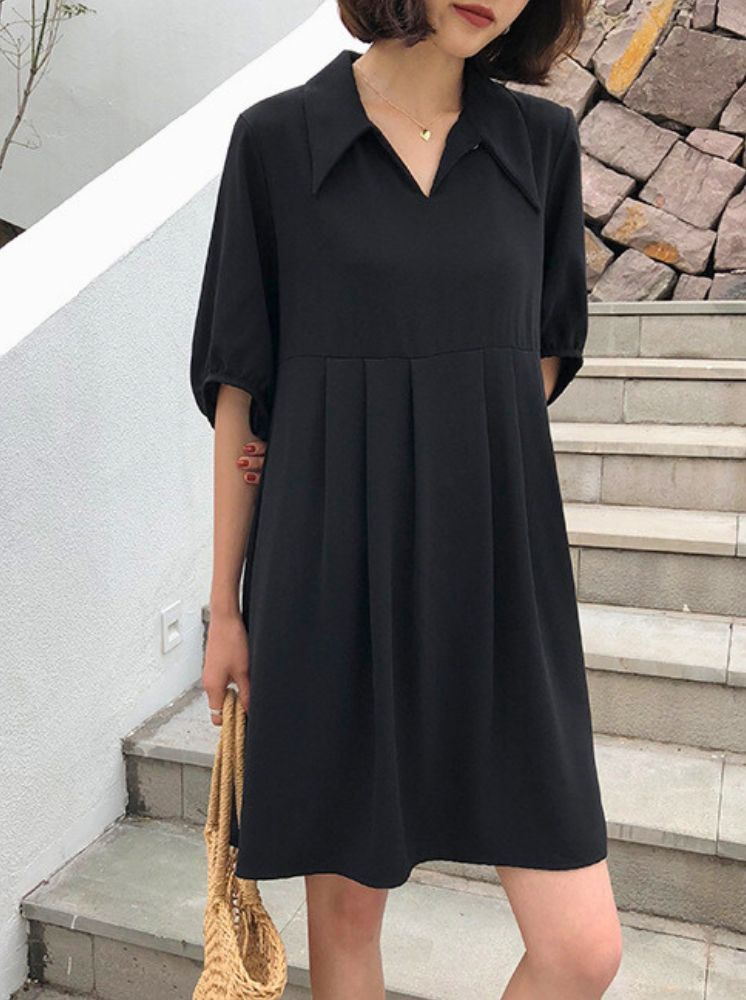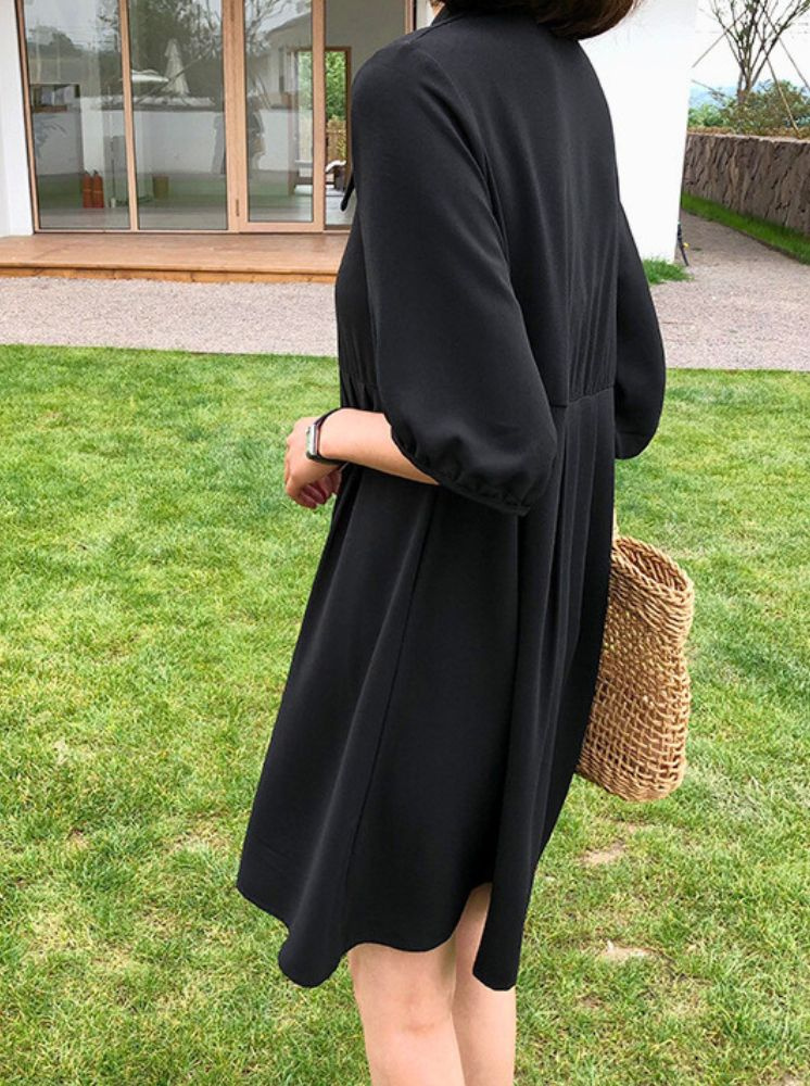 襯衫領簡約修身洋裝-黑:選擇尺寸