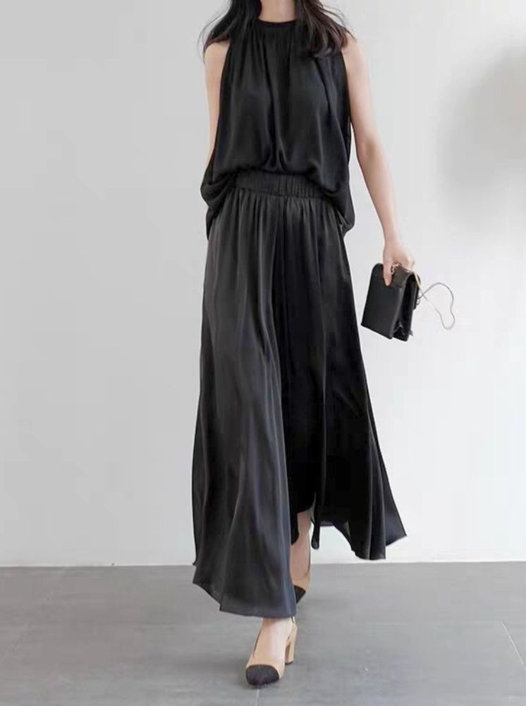 鬆緊飄逸流光寬褲-白
