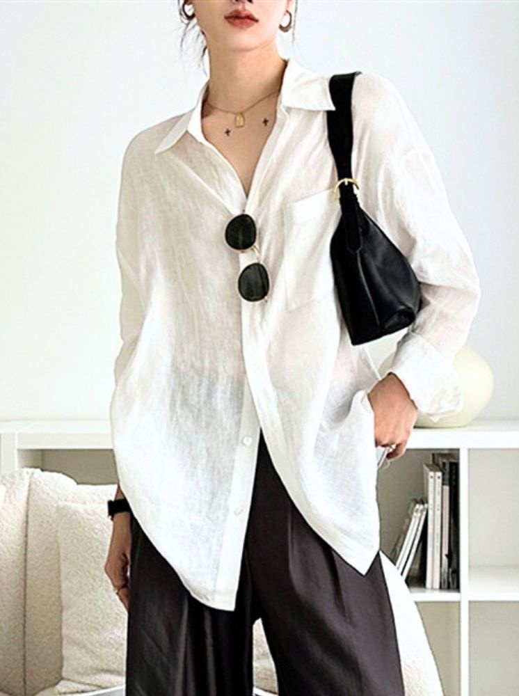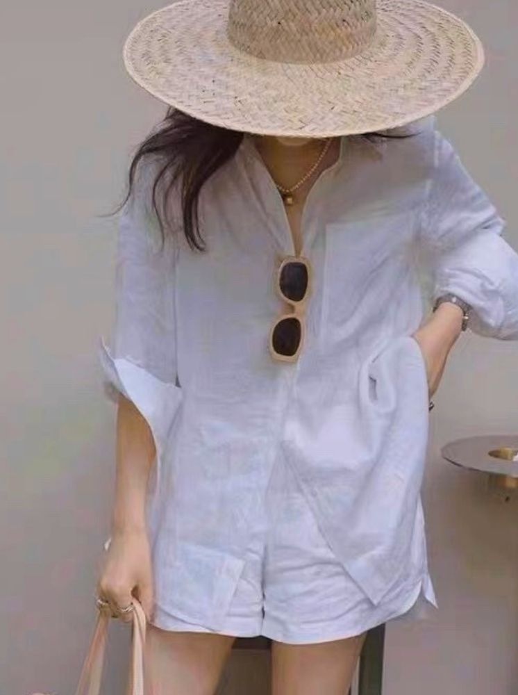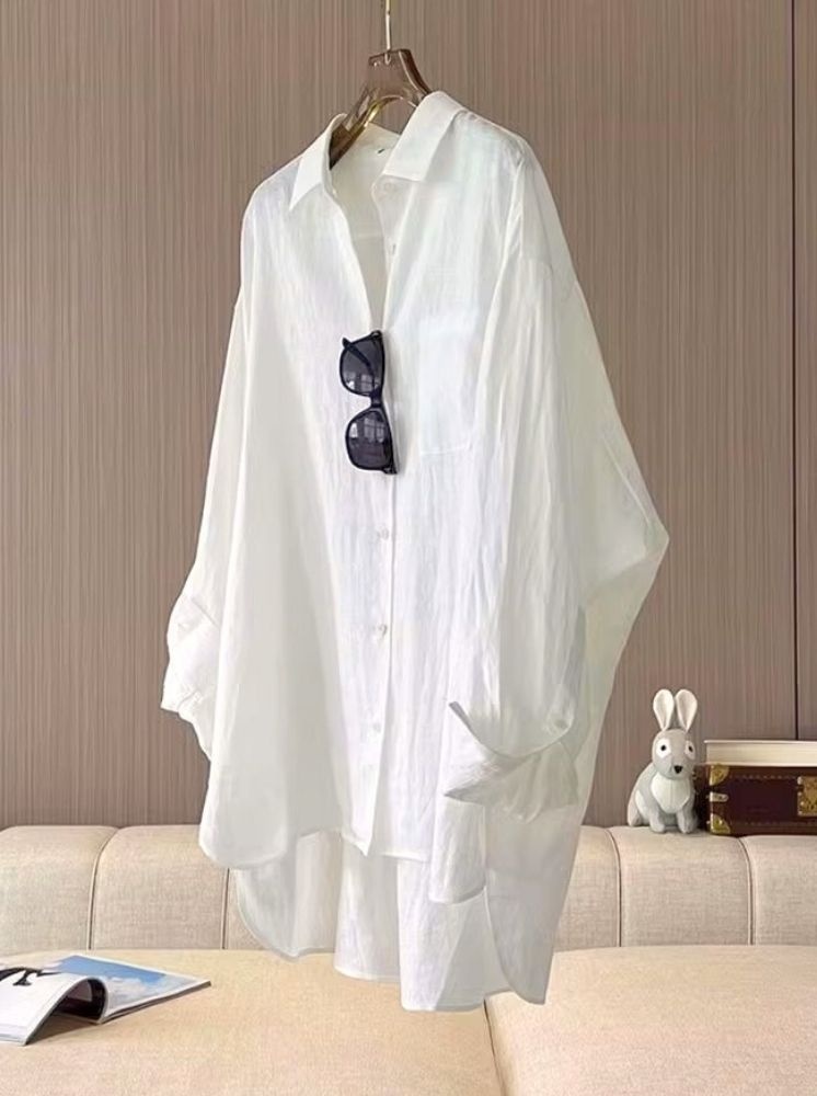 透氣棉麻寬鬆罩衫-白:選擇尺寸