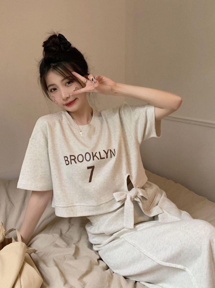 甜美綁帶棉T套裝-杏:選擇尺寸