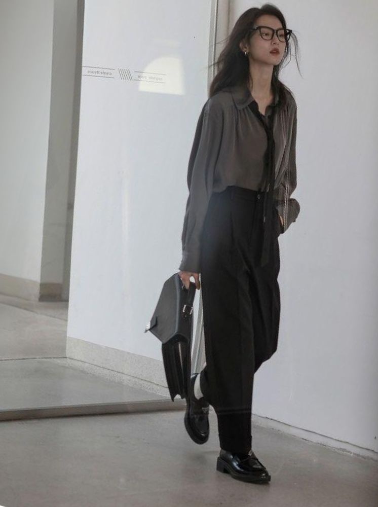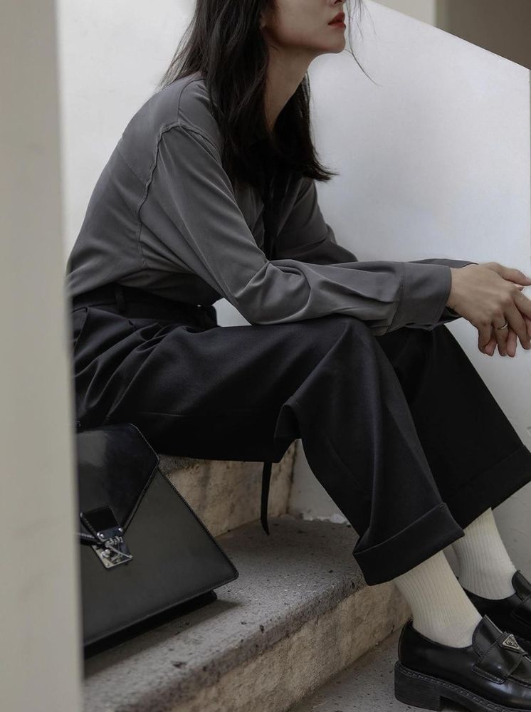 簡約寬鬆襯衫(附領帶)-深灰