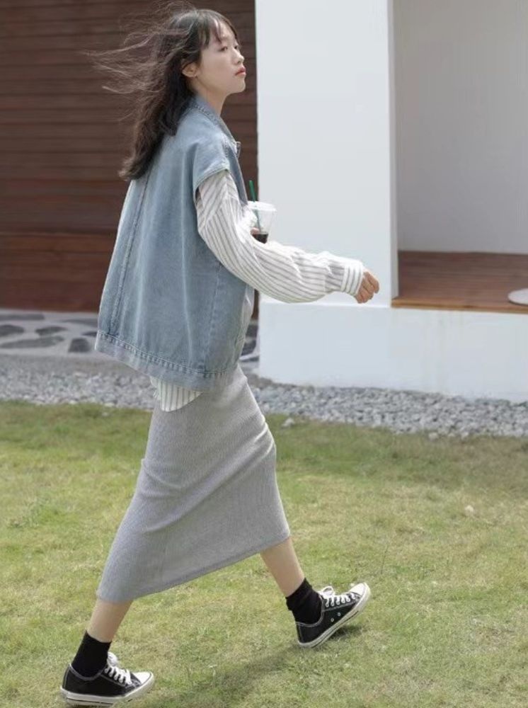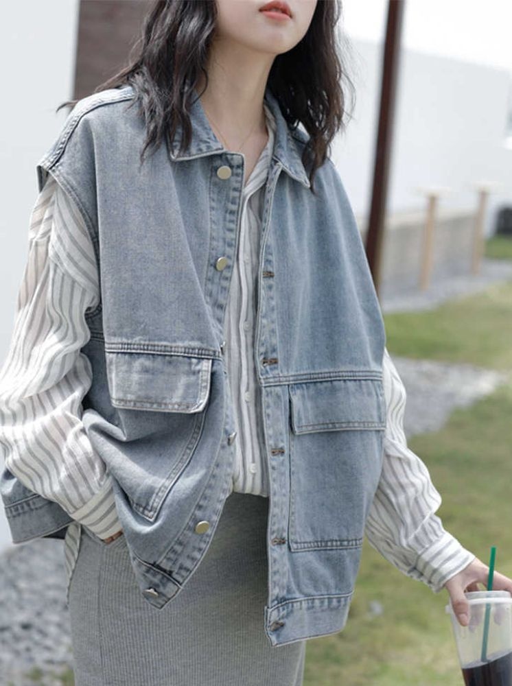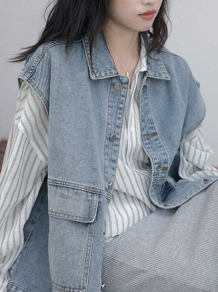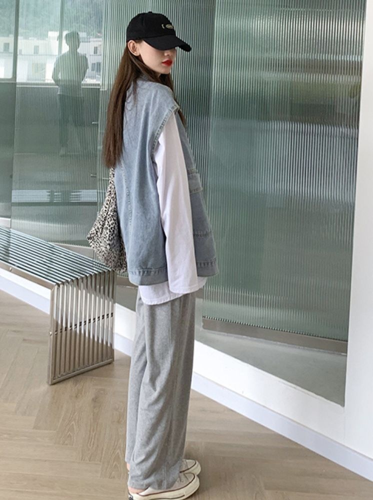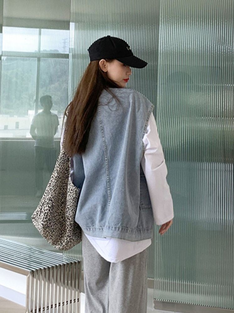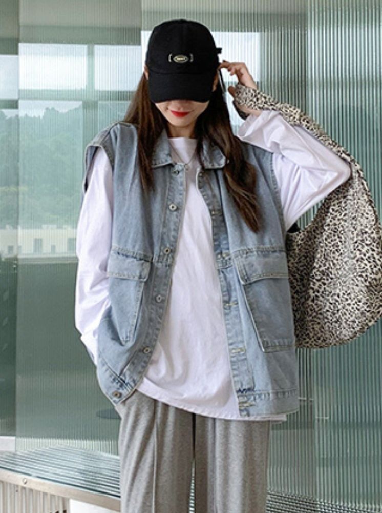 韓版寬鬆牛仔背心-淺藍:選擇尺寸