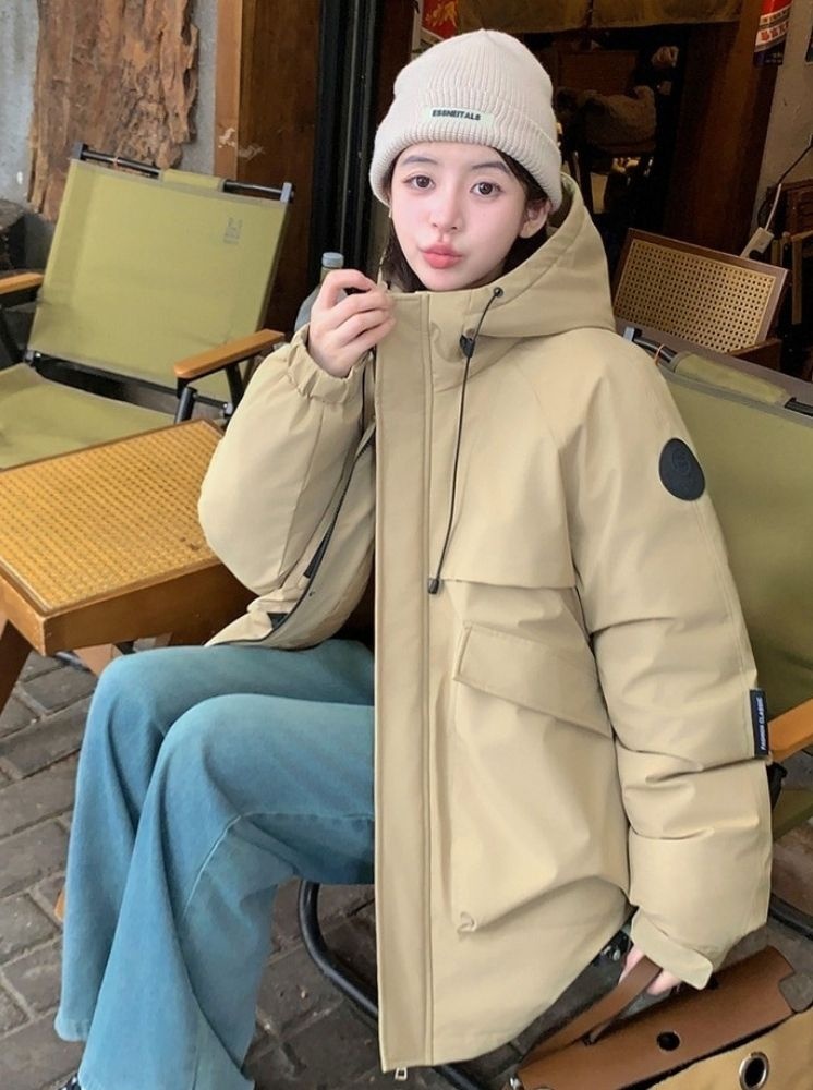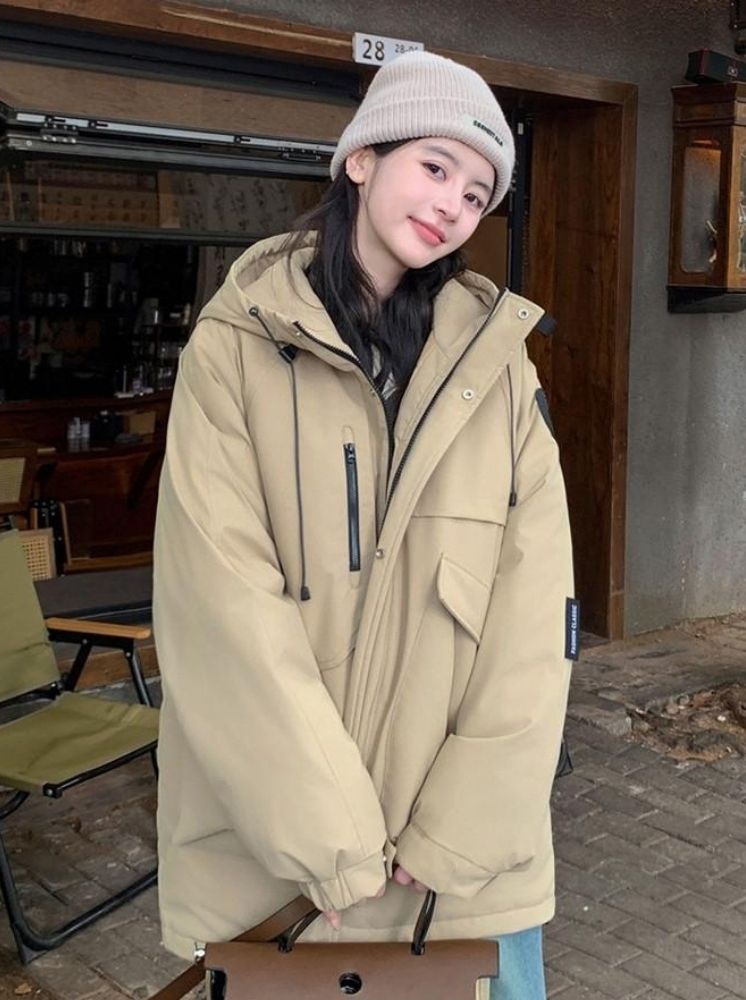 大口袋升溫羽棉外套-卡其:選擇尺寸
