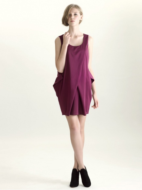 簡約拼接背心洋裝-紫色:選擇尺寸