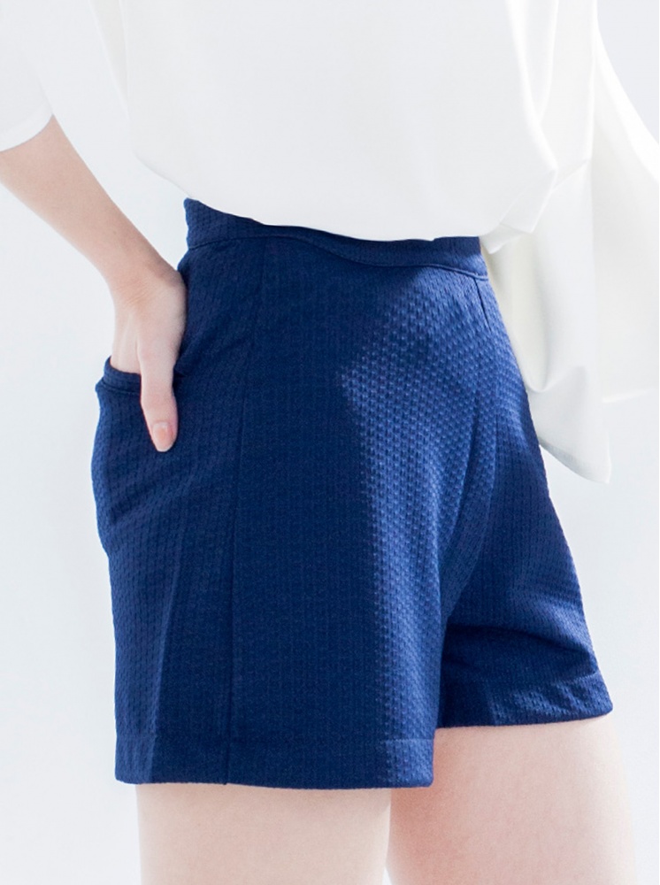 • 緹花修身短褲-深藍