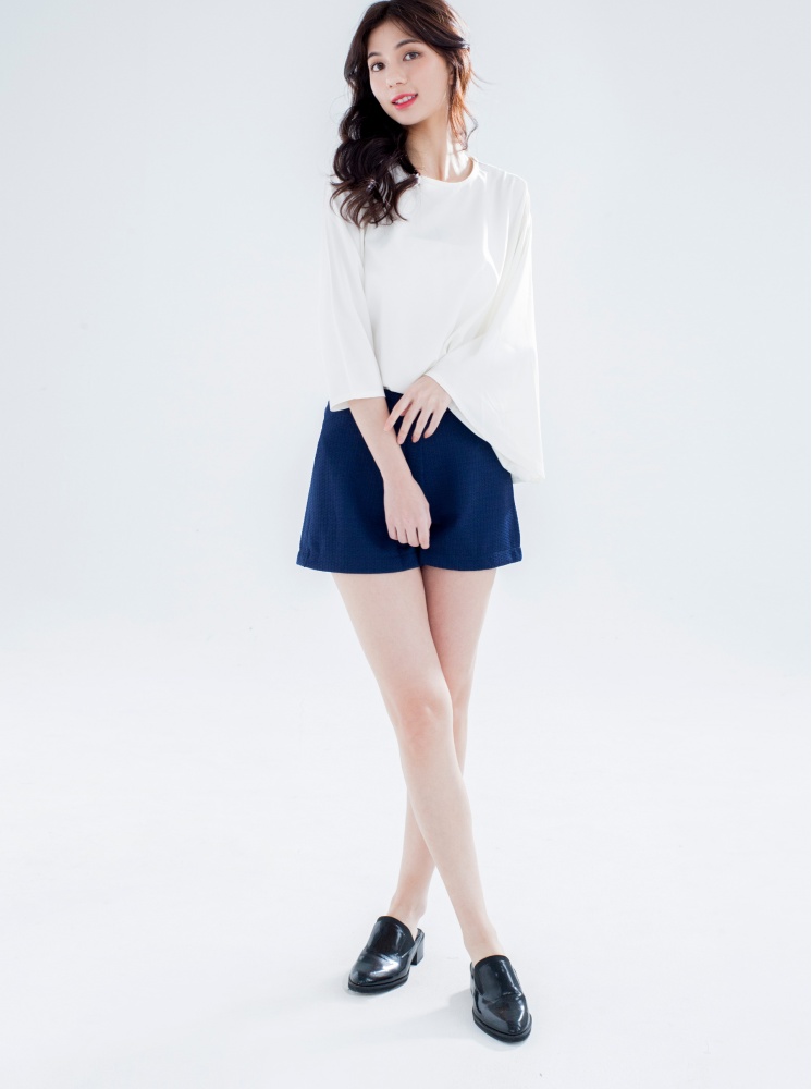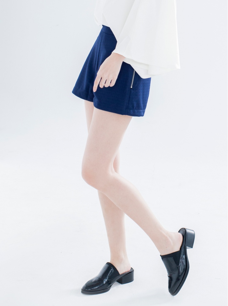 緹花修身短褲-深藍:選擇尺寸